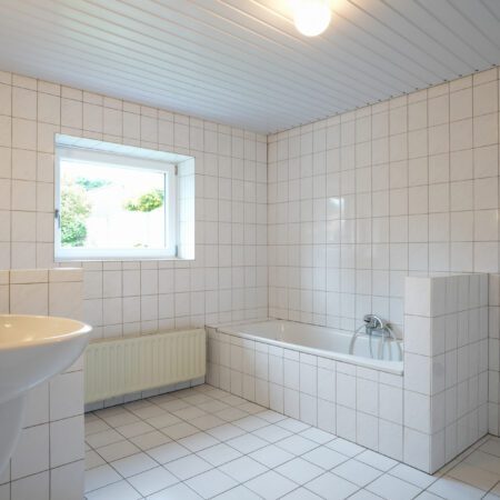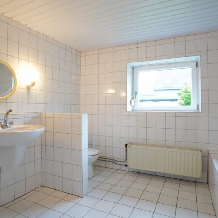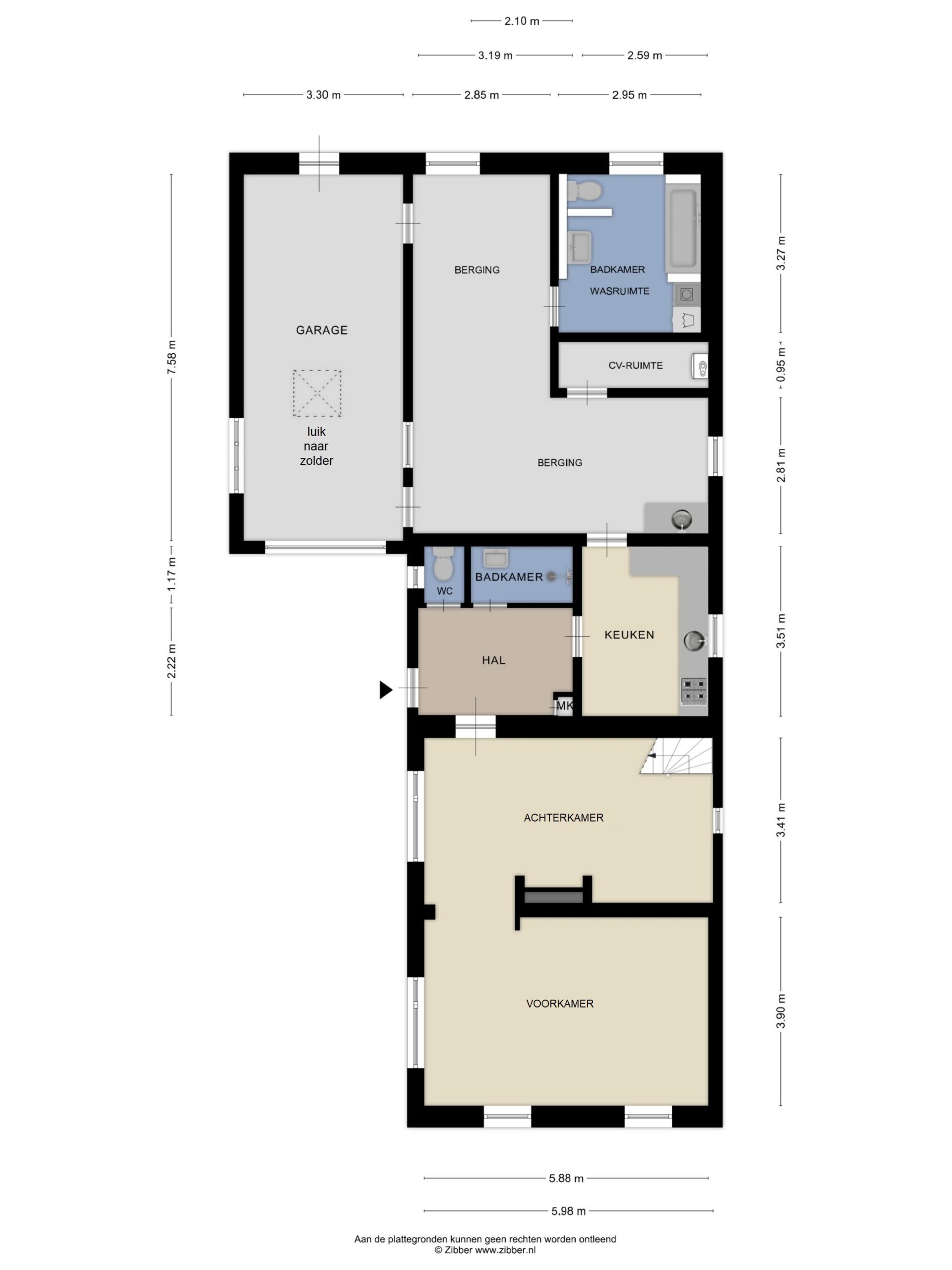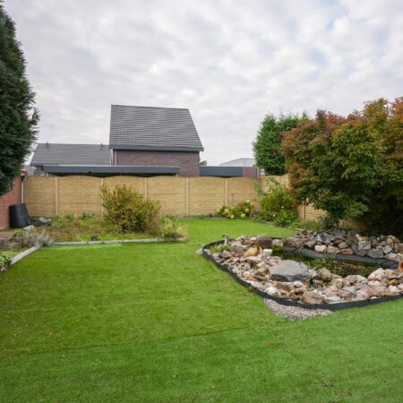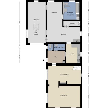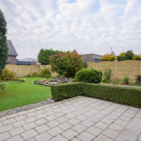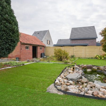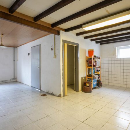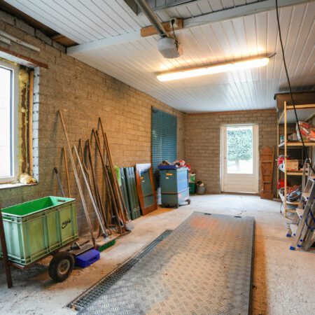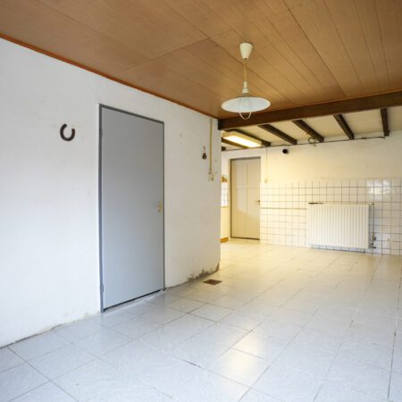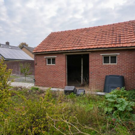 We gaan terug naar de keuken waar de toegang zich bevindt naar een grote, inpandige, L-vormige berging van in totaal ca. 30 m2, voorzien van een tegelvloer, verwarming, een keukenblok met spoelbak en 2 vaste gevelramen. Aangrenzend aan deze berging is er een geheel betegelde tweede badkamer annex wasruimte van ca. 3.30 x 2.95 m gerealiseerd, voorzien van een wastafel, toilet, ligbad, verwarming, gevelraam en witgoedaansluitingen. Daarnaast bevindt zich de cv-ruimte van ca. 2.95 x 0.95 m waar recent een nieuwe combiketel is geplaatst (Remeha Avanta Ace 35C, CW5, bouwjaar 26-08-2022). Vanuit de berging hebben we zowel aan de achter- als aan de voorzijde een doorgang naar de inpandige grote garage van ca. 7.60 x 3.30 m. Deze is, net als het merendeel van de woning, gemetseld in spouw! De garage beschikt over een tegelvloer, een smeerput, elektrisch bedienbare sectionaalpoort, verwarming en een wateraansluiting. Daarnaast kun je aan de achterzijde van de garage via een loopdeur naar buiten naar de tuin en naar de oprit. De achtertuin van ca. 17.00 x 16.00 m is geheel ommuurd en gelegen op het Zuiden. Links achterin de tuin bevindt zich een dubbelsteens gemetselde inloopstal van ca. 6.00 x 4.00 m, voorzien van een bergzolder. Uitstekend geschikt om te transformeren naar een gezellig tuinhuis of guesthouse. Rechts van de woonboerderij ligt een looppad langs het huis, links bevindt zich de zijtuin van in totaal ca. 215 m2 met de brede oprit, een afsluitbare poort aan de voorzijde en een afsluitbare stalen poort aan de achterzijde bij de overgang naar de achtertuin.