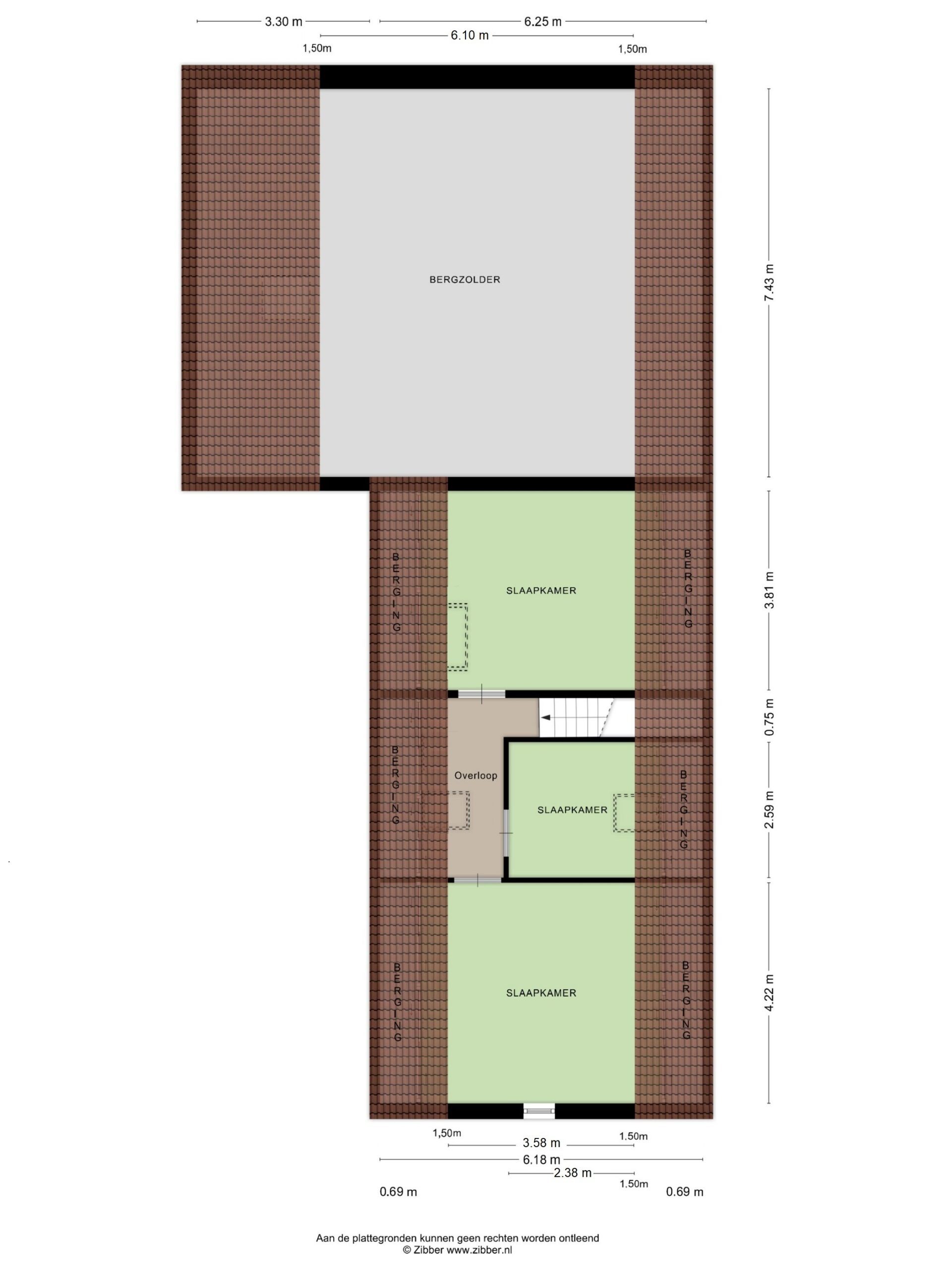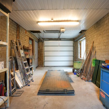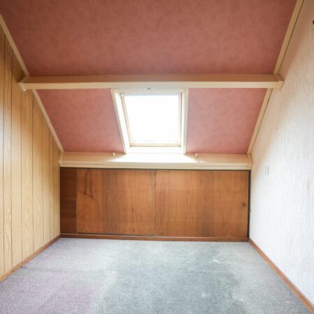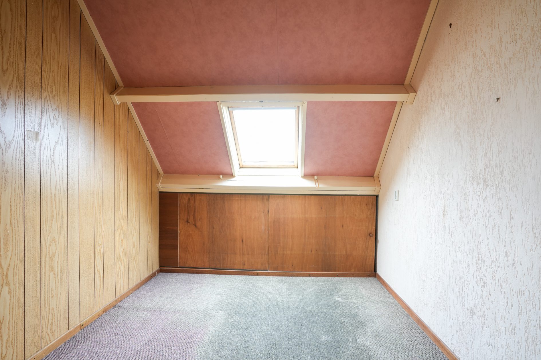 In de garage bevindt zich een luik waar je met een losse trap de enorme bergzolder (met onbeschoten kap) van ca. 9.75 x 7.45 m kunt bereiken. Dit is natuurlijk een uitstekende ruimte om te betrekken bij de woonverdieping voor het realiseren van extra slaapkamers en een badkamer.