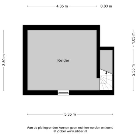 Via de wasruimte annex berging op de begane grond loop je naar de toegang tot de kelder. We lopen de trap naar beneden en komen dan in een praktische, droge kelderruimte van ca. 4.35 x 3.80 m, voorzien van een nieuw kelderraam, tegelvloer en stucwerk wandafwerking. De stahoogte bedraagt ca. 1.80 m.