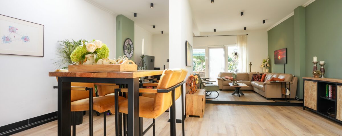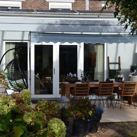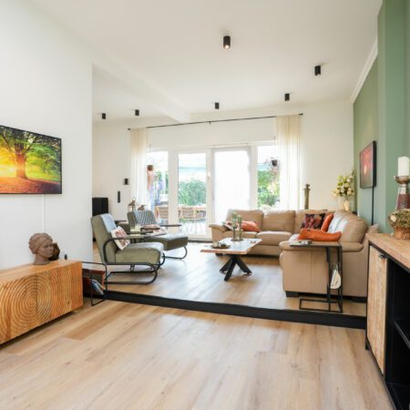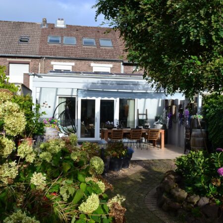 Je komt aanrijden voor de bezichtiging en parkeert je auto in de parkeerstrook tegenover de woning. Je stapt uit en kijkt naar de voorgevel van de woning. Dat is mooi, die karakteristieke jaren ’30 architectuur! We gaan naar binnen en komen in de hal c.q. gang zoals het in die tijd gebruikelijk was. Omdat het een tussengelegen herenhuis betreft, was er vroeger naast de voordeur een extra deur voor een doorgang naar de achtertuin. Dit is inmiddels gewijzigd in een praktische garderoberuimte in de hal en een separate berg- c.q. was-/cv-ruimte, bereikbaar vanuit de living. De cv-combiketel (Remeha Avanta 28C CW5) is uit 2012 en in eigendom). In de hal bevindt zich een gemoderniseerde meterkast en een modern, deels betegeld toilet met wandcloset en fonteintje. Verder bevindt zich in de hal de recent gerenoveerde trap naar de verdieping. Via een met glaspanelen bezette moderne deur komen we vanuit de hal in de open keuken van ca. 3.95 x 2.65 m. Voorzien van een tegelvloer en een landelijke, in 2021 gemoderniseerde inbouwkeuken, bestaande uit massief houten panelen, een antraciet granieten werkblad en alle gebruikelijke apparatuur (inductiekookplaat, afzuigkap, oven, vaatwasser en koelkast). Vanuit de keuken is er enerzijds een fraaie doorkijk en toegang naar de living en anderzijds ook een open toegang naar de riante eetkamer van ca. 8.10 x 3.35/2.60 m, gelegen aan de voorzijde van de woning. Vanuit de eetkamer lopen we via dubbele openslaande taatsdeuren naar de in 2004 aangebouwde living en eerlijk gezegd, je weet niet wat je ziet! Met een plafondhoogte van maar liefst tussen ca. 3.00 en 3.10 m, een oppervlakte van in totaal ca. 54 m2, veel lichtinval door de grote lichtkoepels en de grote glaspartij in de achtergevel, is dit een leefruimte die ronduit imponeert! Voorzien van een moderne pvc hout-look (licht-eiken) vloer, glad stucwerk wandafwerking, gashaard en infrarood verwarming is dit “the place to be” voor ontspanning en gezellig samenzijn. We lopen vanuit de living naar buiten en komen dan op een buitengewoon sfeervol aangelegd overdekt terras van ca. 6.50 x 4.00 m, geheel voorzien van een aluminium terrasoverkapping. Wordt de zon je te veel dan druk je op een knop om de sunscreen over het dak van de overkapping te activeren. We lopen verder door de tuin en na een gedeelte siertuin met looppad komen we bij het volgende, ook weer bijzonder gezellige terras dat eveneens is overdekt met een aluminium overkapping van ca. 3.65 x 3.65 m. Hier zit je dus letterlijk midden in het groen! Overal buiten is sfeervolle verlichting aangelegd en zijn er diverse stopcontacten aanwezig. We lopen weer verder en komen bij terras nummer 3, gelegen rondom een grote vuurkorf. Je krijgt hier buiten echt een vakantiegevoel en dat wordt nog eens extra benadrukt in het volgende deel van de tuin dat is ingericht met een groot (recent) opzetzwembad met een diameter van bijna 5 meter en met alle bijbehorende voorzieningen, incl. verwarming. Deze wordt ter overname aangeboden. Houdt de tuin dan nooit op? Nee, want aansluitend bevindt zich een grote garage uit 2017 van ca. 6.45 x 5.20 m met een hoogte van ca. 2.60 m, voorzien van een grote, elektrisch bedienbare sectionaalpoort van ca. 5.00 m breedte en last but not least, links van de garage een afsluitbare poort voor een praktisch achterom. De toegang tot de garage via de achterzijde van het perceel is geregeld met notarieel vastgelegde erfdienstbaarheid. We lopen het hele eind door de achtertuin weer terug om de rest van de woning op de verdiepingen te bekijken.