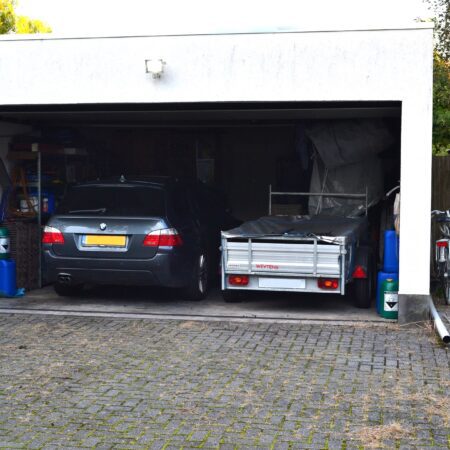 • Grote dubbele garage uit 2017 met achterom;