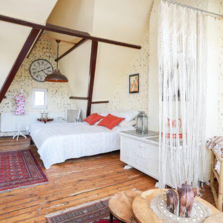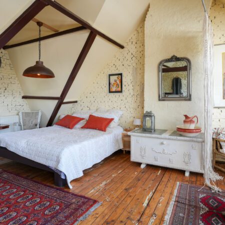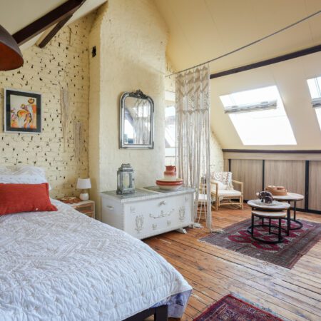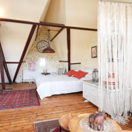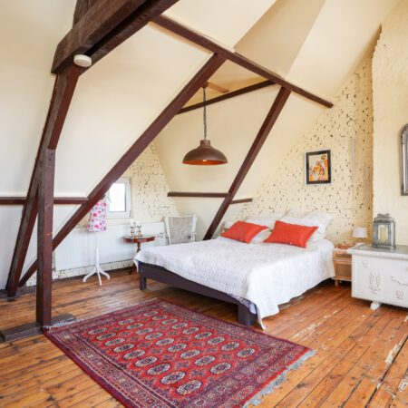 Via de overloop gaan we met een vaste trap nog een verdieping hoger. Eenmaal boven zul je ook hier weer versteld staan! Dit is geen bergzolder meer, maar een tot mega master bedroom verbouwde prachtige ruimte met een vloeroppervlakte van ca. 53 m2! Met zithoek, met thuiswerkplek, met prachtig spantenwerk, met geïsoleerd dak, met schitterende, authentieke dakkapel, met 4 grote Velux dakramen, met verwarming en last but not least, met een schitterende authentieke grenen plankenvloer. Kortom, een adembenemend mooie ruimte! Desgewenst is deze ruimte eenvoudig aan te passen tot max. 3 slaapkamers.