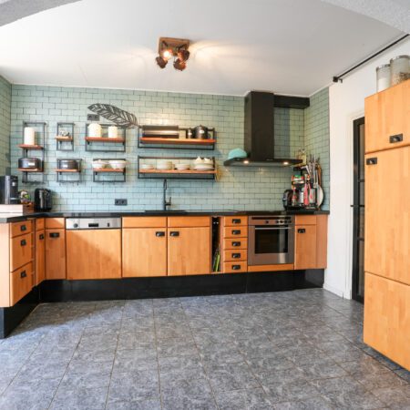 De woning ligt aan de rand van de geliefde wijk Hoefveld in Nieuwenhagen, Landgraaf. De straat gaat ca. 100 m voorbij de woning over in een wandel-/fietspad in landelijk gebied. Dat is natuurlijk ideaal als je na een drukke werkdag even “buiten de deur” wilt ontspannen. Wil je iets meer, dan adviseren wij een dagje uit in het op 6 minuten autorijden gelegen prachtige natuurgebied Brunssummerheide. Heb je schoolgaande kinderen? De basisschool ligt op 300 m loopafstand. Voor het voortgezet onderwijs hoeven je kids maar 5 minuten te fietsen naar Het Eijkhagen College (VMBO-HAVO-VWO). Voor de boodschappen is er op 1.1 km afstand een groot winkelcentrum (Op de Kamp) voorhanden waar o.a. aanwezig de supermarkten Plus, Jumbo en Lidl als ook Kruidvat, Hema etc. Hoe zit het dan met bereikbaarheid voor je werk? Binnen 500 m afstand zijn er 2 bushaltes. Het dichtstbijzijnde NS-station ligt op ca. 2,4 km (Stationsplein 63 Landgraaf) en ga je met de auto, dan zit je binnen een paar minuten op de stadsautoweg N300 richting het noorden of zuiden met onderweg diverse aansluitingen op de reguliere autosnelwegen. Tot slot voor de sportliefhebbers. In de directe omgeving is er een ruime keuze in sportverenigingen (voetbal, tennis, paardrijden etc.)