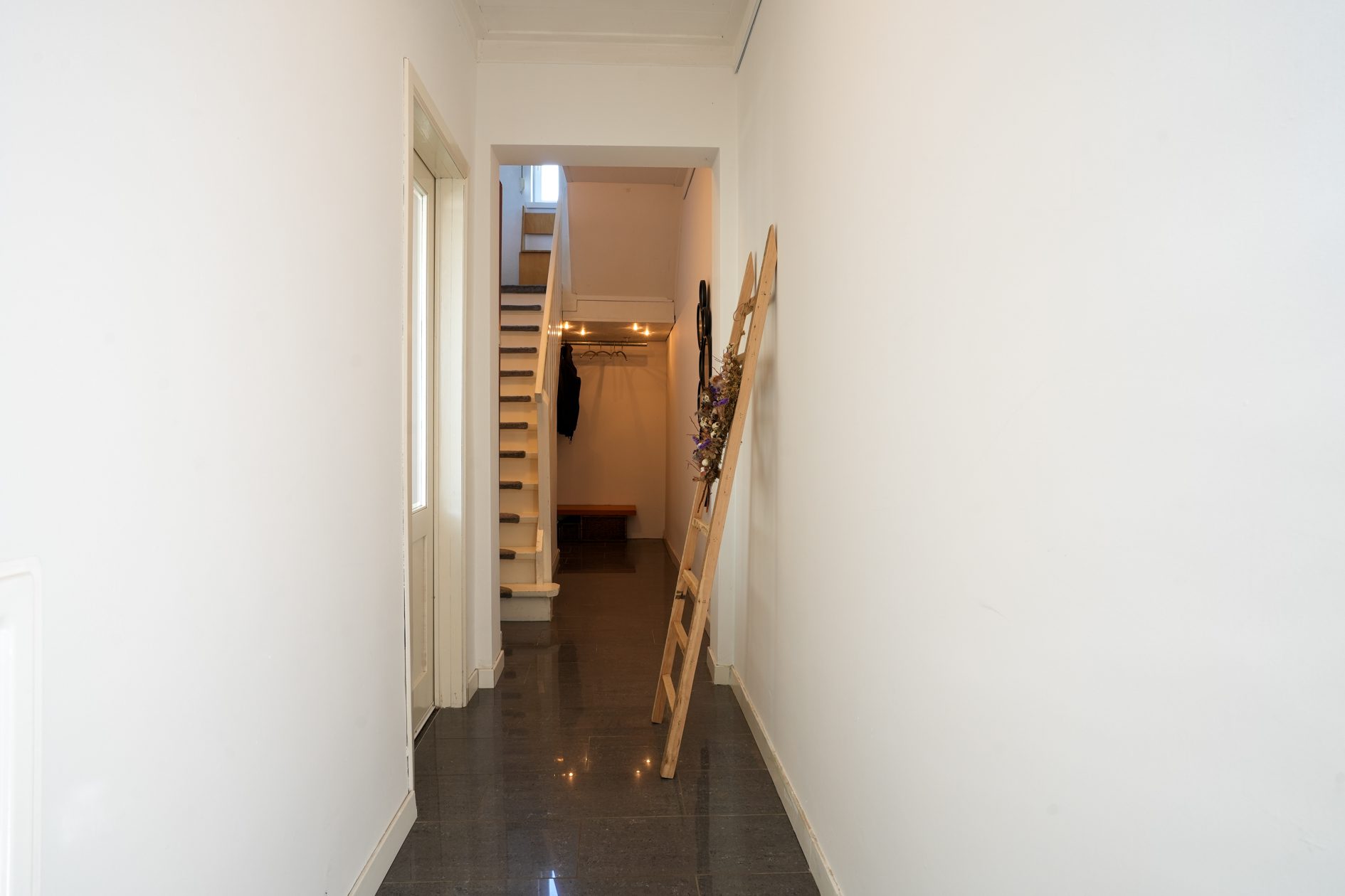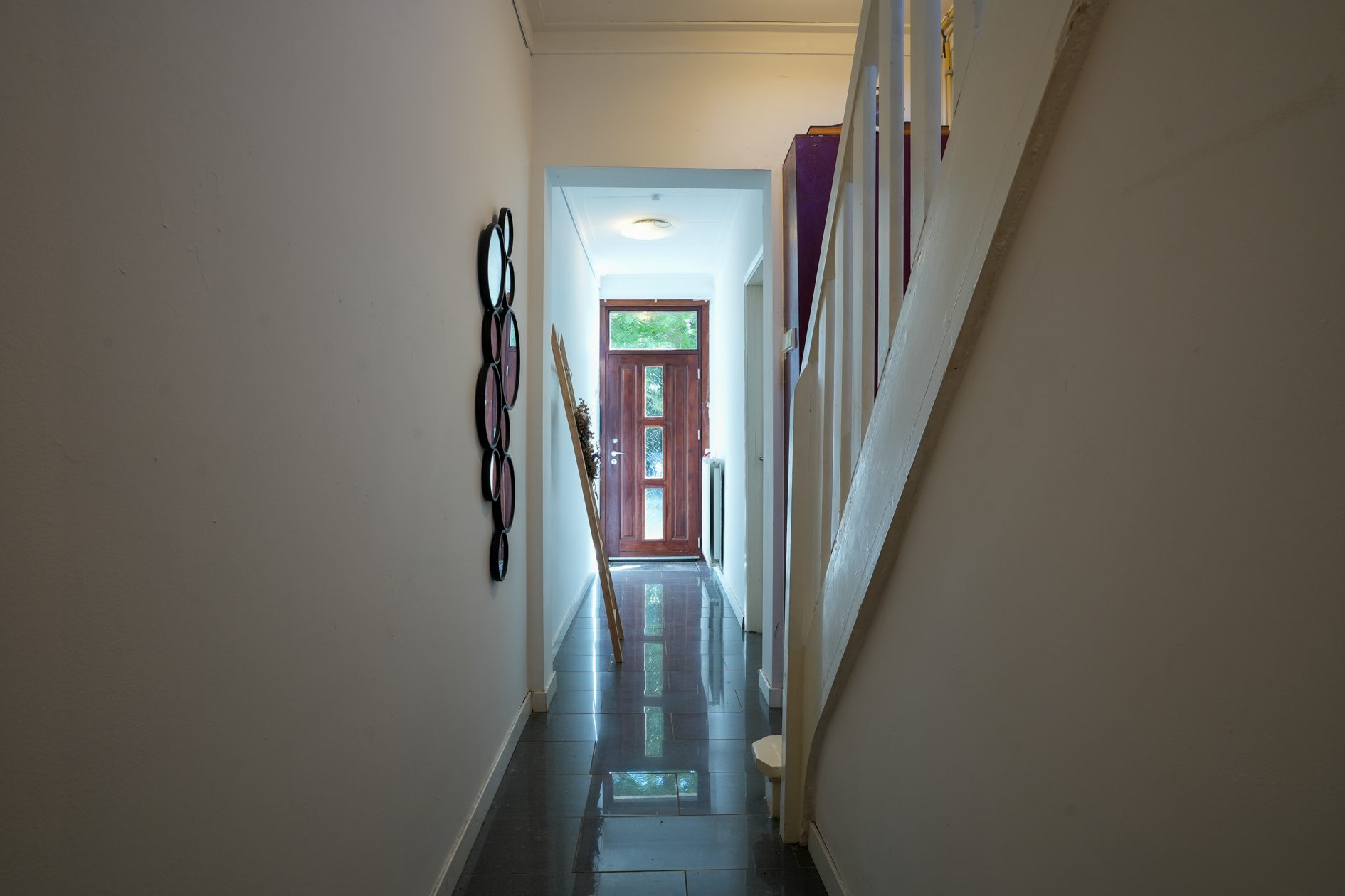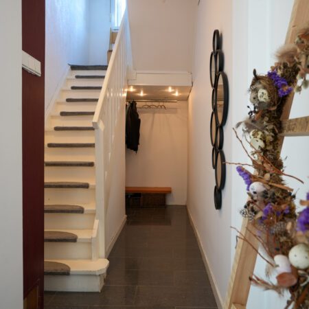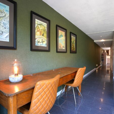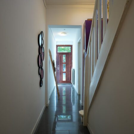 Wij gaan via de voordeur! Dan kom je in een statige en karakteristieke jaren ‘30 ontvangsthal/gang van maar liefst bijna 8,5 m lang en met een riante plafondhoogte van net geen 3 m! Voorzien van recent uitgevoerd nieuw stucwerk wandafwerking (zoals op de gehele begane grond), hoogglans plavuizen, een praktische garderobenis en een mooie bordestrap naar de verdieping, is deze hal met recht een indrukwekkende en stijlvolle binnenkomer! In de hal bevindt zich ook de meterkast die in 2022 is vernieuwd en is voorzien van een uitgebreide groepenkast met moderne schakelautomaten.