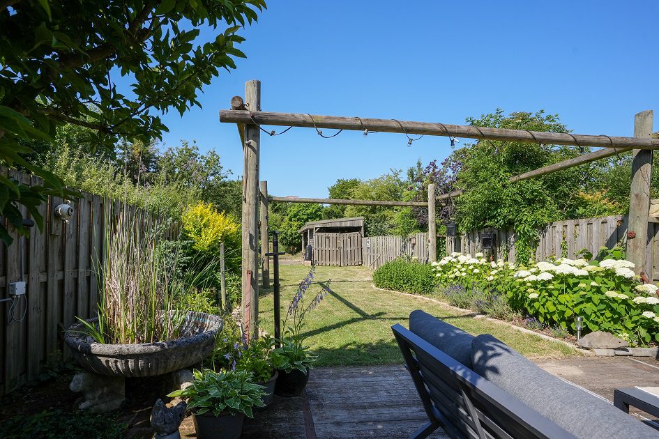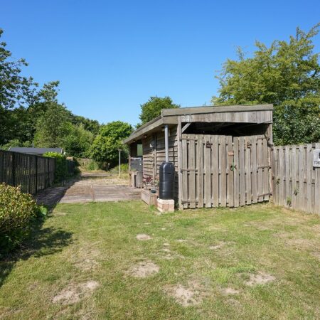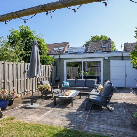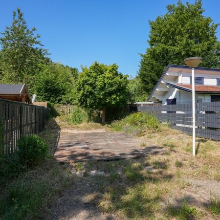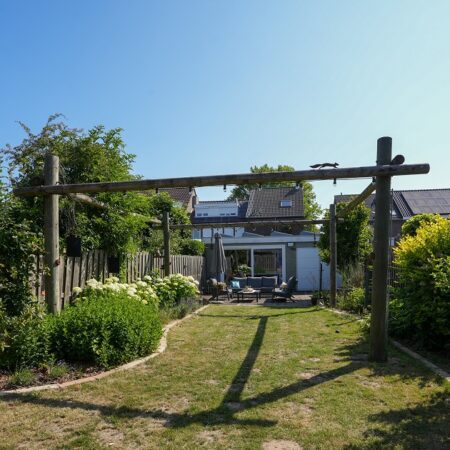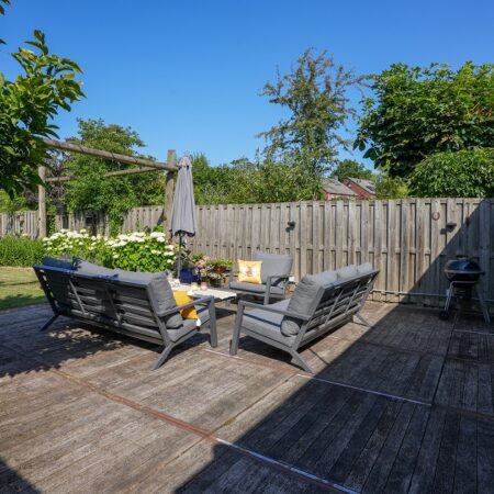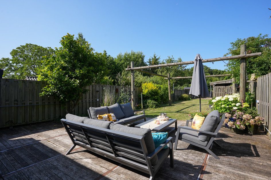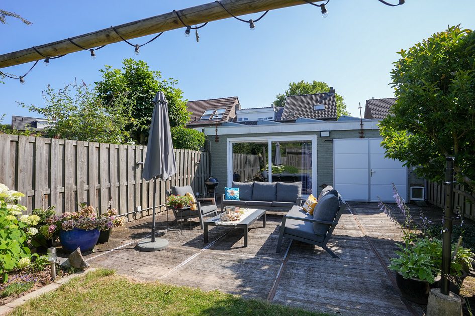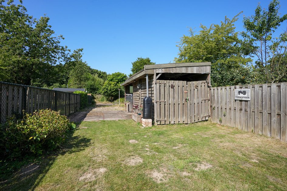 Vanuit de tweede woonkamer lopen we de achtertuin in. Met een diepte van ca. 52 m, een uitstekende bezonning en optimale privacy is dit een heerlijke plek om te ontspannen op het bij de tuinkamer gelegen terras of straks misschien in je eigen zwembad. In de achtertuin bevindt zich een houten tuinberging van ca. 4.35 x 2.90 m met aansluitend een overdekt terras van ca. 3.20 x 2.90 m. We lopen weer terug naar de woning want er is nog veel meer om te bekijken.