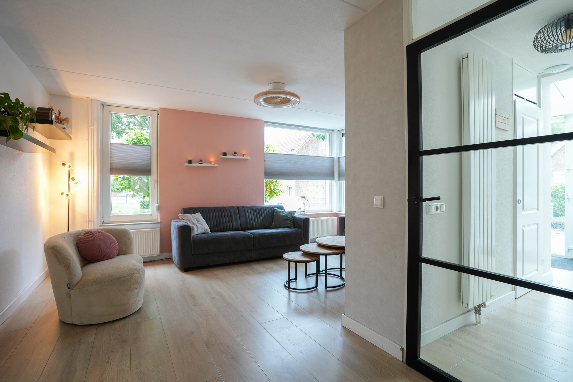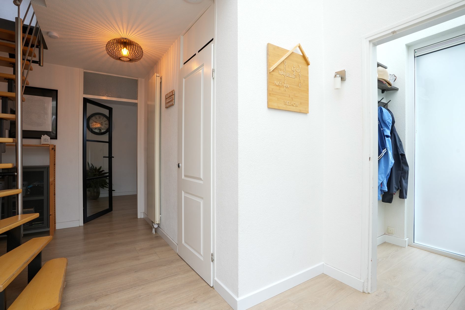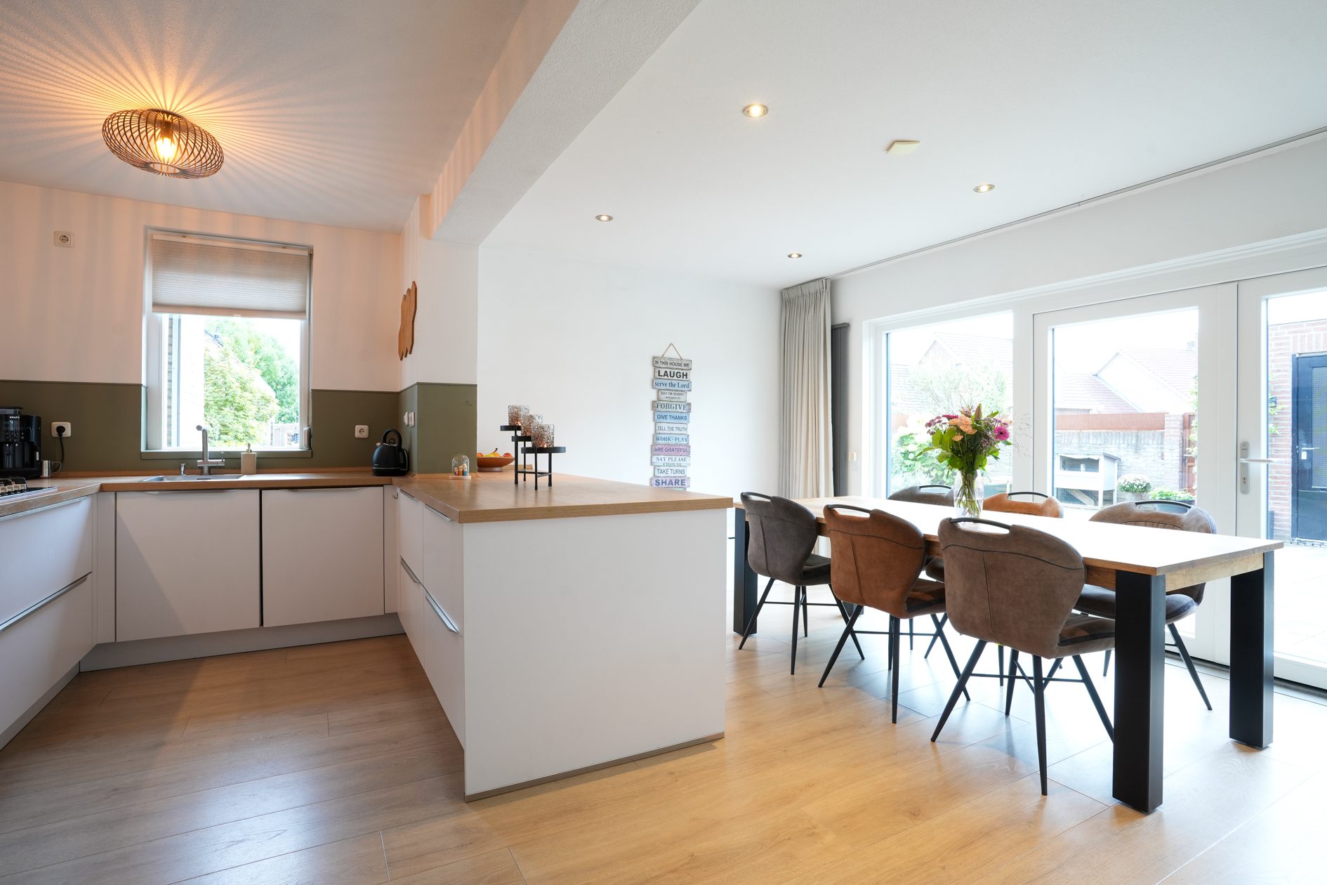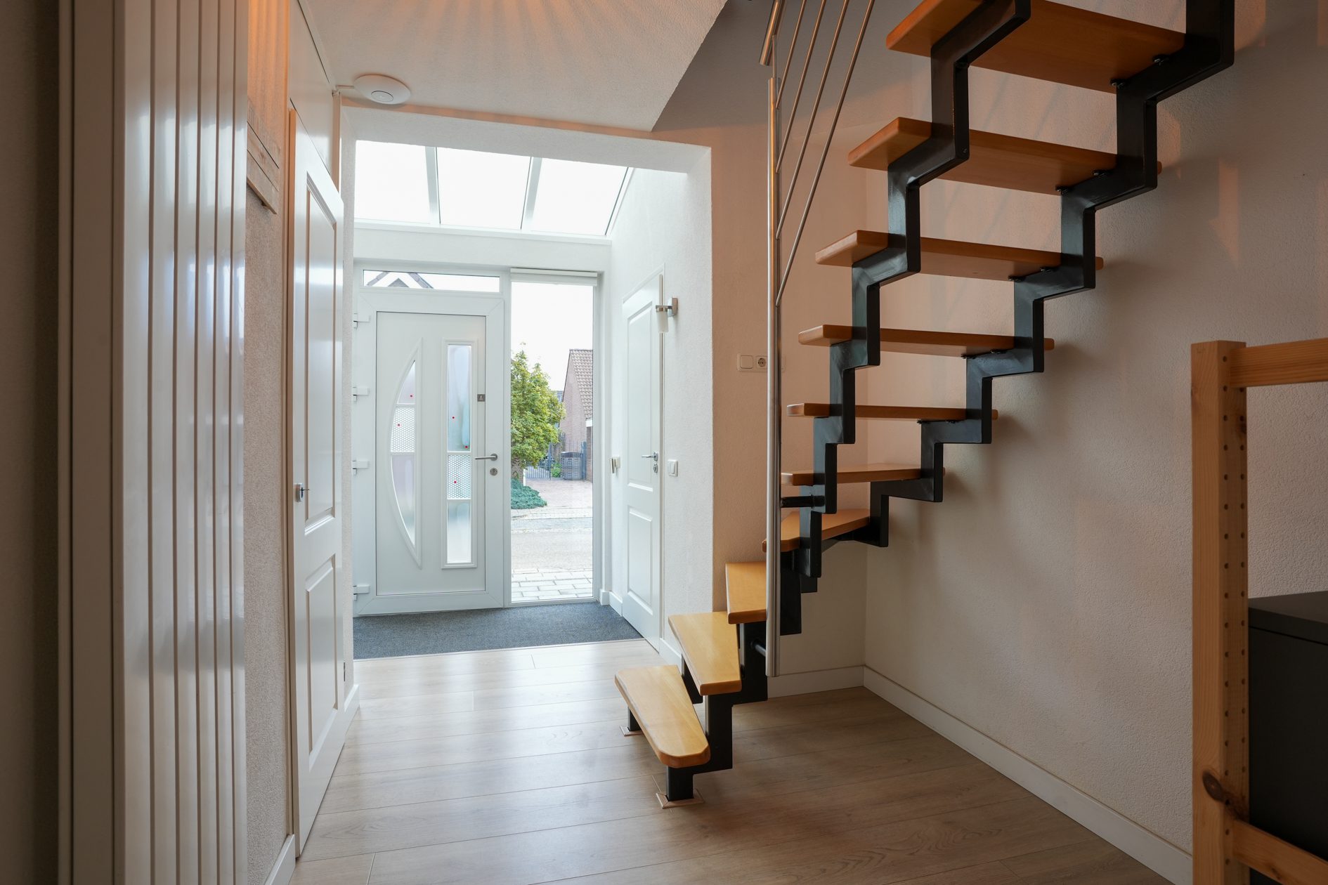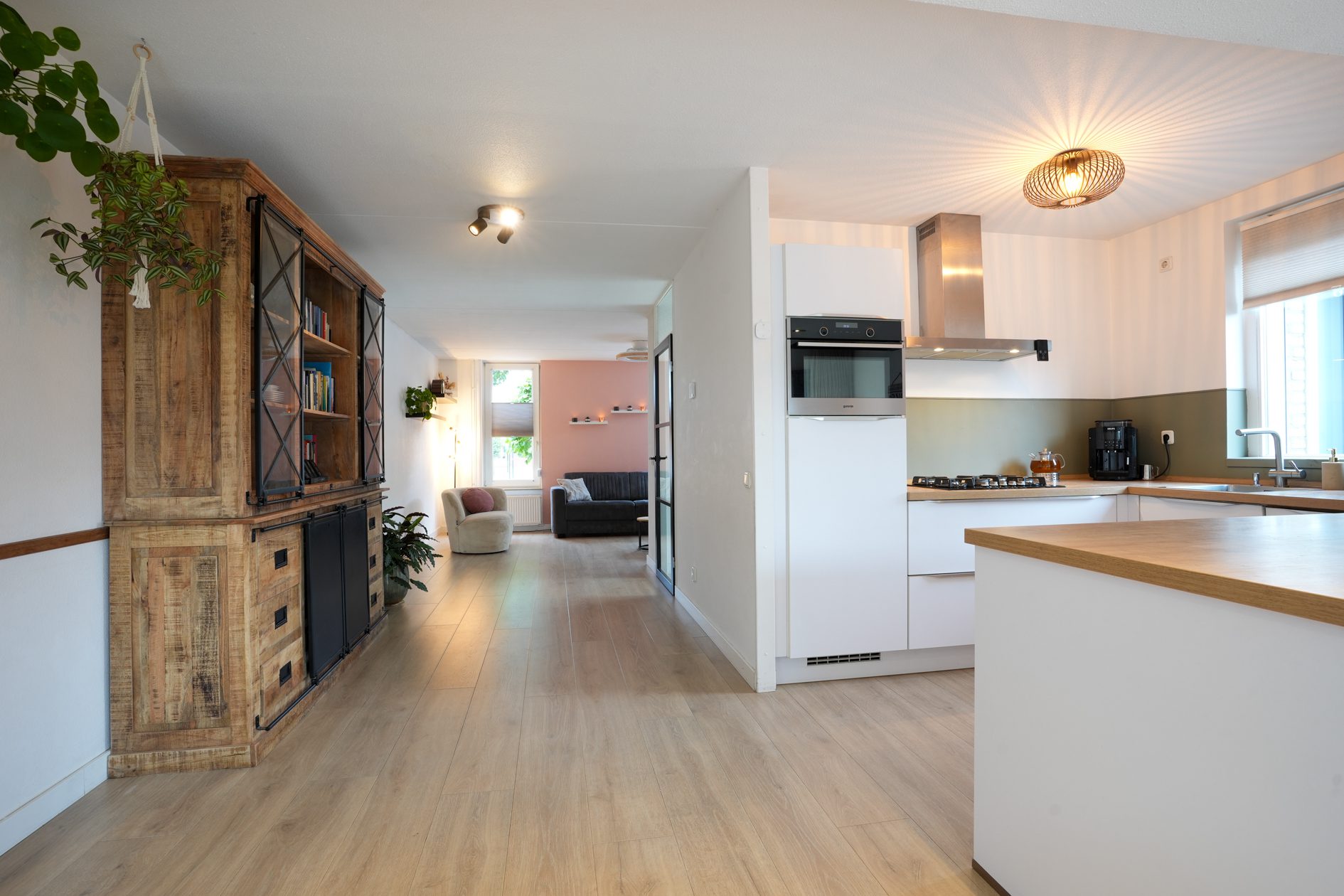 De entree van deze mooie woning ligt in de zijgevel, aan de Van Doesburglaan. Je staat voor de woning en er valt meteen iets op. De tuin rondom de woning is recent aangelegd, onderhoudsvriendelijk en voorzien van trendy cortenstaal tuinelementen. Daarnaast zie je een fraaie entree naar de woning die als het ware is aangebouwd en is voorzien van een brede lichtstraat. Eenmaal in de royale hal ervaar je de heerlijke hoeveelheid lichtinval hierdoor! De lichtstraat loopt door in het toilet en aan de andere kant in de berging annex garderobe. In de hal bevindt zich verder een open designtrap naar de verdieping, een moderne meterkast, een sierradiator en de toegang naar de living middels een glazen deur. Het ruim bemeten gastentoilet uit 2020 is voorzien van een moderne betonlook vloer, glad stucwerk wandafwerking, een wandcloset en een fonteintje. We lopen de living in. Door de aanbouw aan de achterzijde (met vloerverwarming, een gevelbrede glazen pui en openslaande tuindeuren) is hier een heerlijke, ruime en open leefruimte tot stand gekomen van in totaal ca. 52 m². Bewust is ervoor gekozen om de eetkamer in de aanbouw te situeren. Hierdoor is er naast een optimaal tuincontact ook een directe verbinding met de open keuken die zich in het midden van de living bevindt. In de keuken is in 2016 een moderne installatie in U-opstelling geplaatst, voorzien van een spoelbak, 5-pits gaskookplaat met wokbrander, rvs afzuigkap, oven-/magnetroncombinatie, koelkast en vaatwasser. De gezellige L-vormige woonkamer (met o.a. een groot hoekraam) bevindt zich aan de voorzijde van de woning. Hier is een extra wand met uitsparingen geplaatst waarin o.a. de TV fraai in geïntegreerd kan worden.