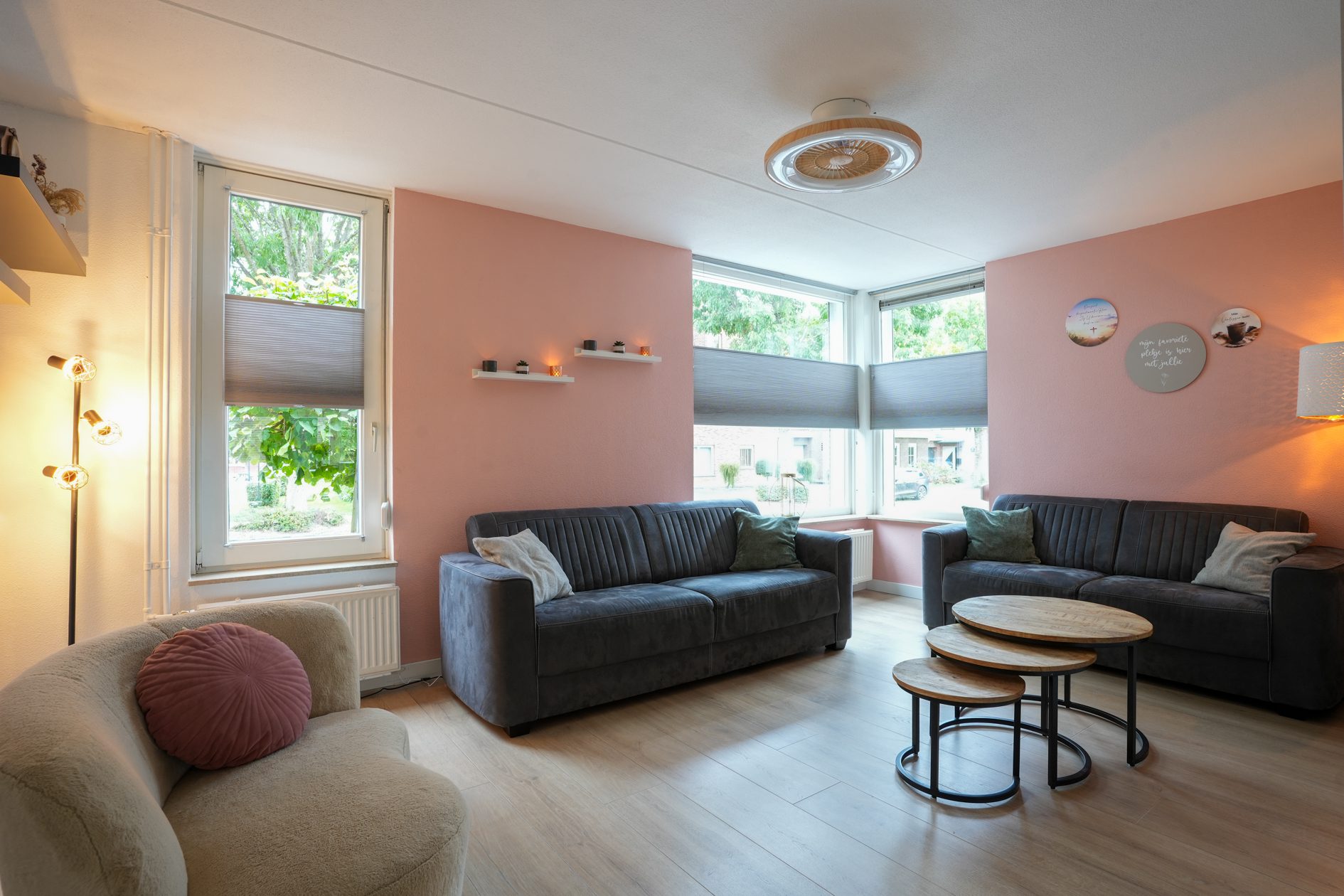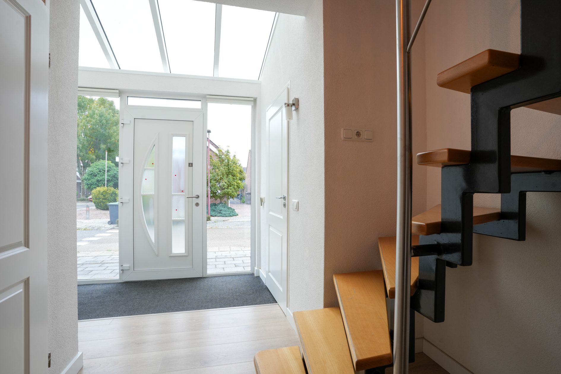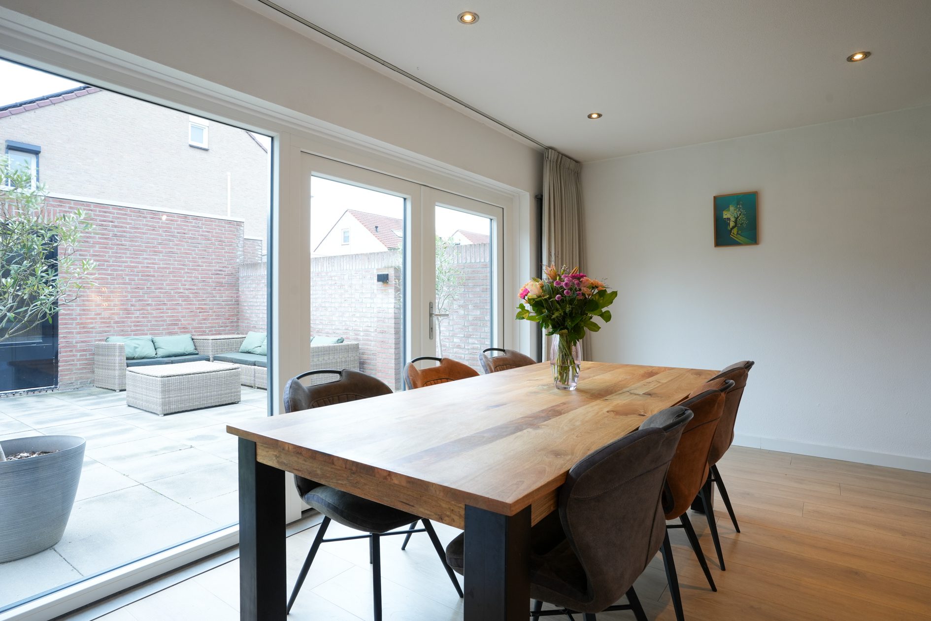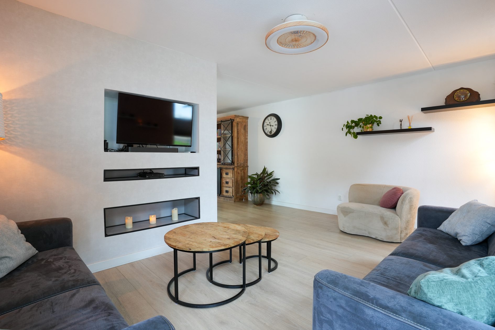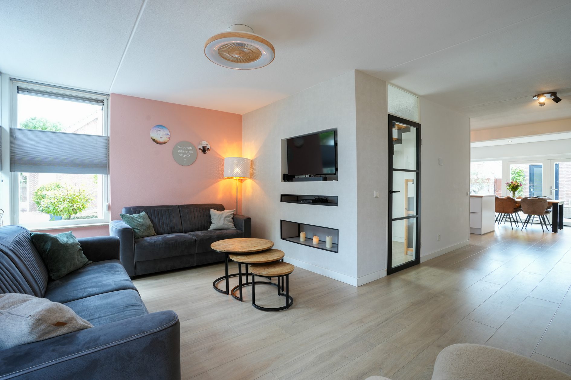De entree van deze mooie woning ligt in de zijgevel, aan de Van Doesburglaan. Je staat voor de woning en er valt meteen iets op. De tuin rondom de woning is recent aangelegd, onderhoudsvriendelijk en voorzien van trendy cortenstaal tuinelementen. Daarnaast zie je een fraaie entree naar de woning die als het ware is aangebouwd en is voorzien van een brede lichtstraat. Eenmaal in de royale hal ervaar je de heerlijke hoeveelheid lichtinval hierdoor! De lichtstraat loopt door in het toilet en aan de andere kant in de berging annex garderobe. In de hal bevindt zich verder een open designtrap naar de verdieping, een moderne meterkast, een sierradiator en de toegang naar de living middels een glazen deur. Het ruim bemeten gastentoilet uit 2020 is voorzien van een moderne betonlook vloer, glad stucwerk wandafwerking, een wandcloset en een fonteintje. We lopen de living in. Door de aanbouw aan de achterzijde (met vloerverwarming, een gevelbrede glazen pui en openslaande tuindeuren) is hier een heerlijke, ruime en open leefruimte tot stand gekomen van in totaal ca. 52 m². Bewust is ervoor gekozen om de eetkamer in de aanbouw te situeren. Hierdoor is er naast een optimaal tuincontact ook een directe verbinding met de open keuken die zich in het midden van de living bevindt. In de keuken is in 2016 een moderne installatie in U-opstelling geplaatst, voorzien van een spoelbak, 5-pits gaskookplaat met wokbrander, rvs afzuigkap, oven-/magnetroncombinatie, koelkast en vaatwasser. De gezellige L-vormige woonkamer (met o.a. een groot hoekraam) bevindt zich aan de voorzijde van de woning. Hier is een extra wand met uitsparingen geplaatst waarin o.a. de TV fraai in geïntegreerd kan worden.