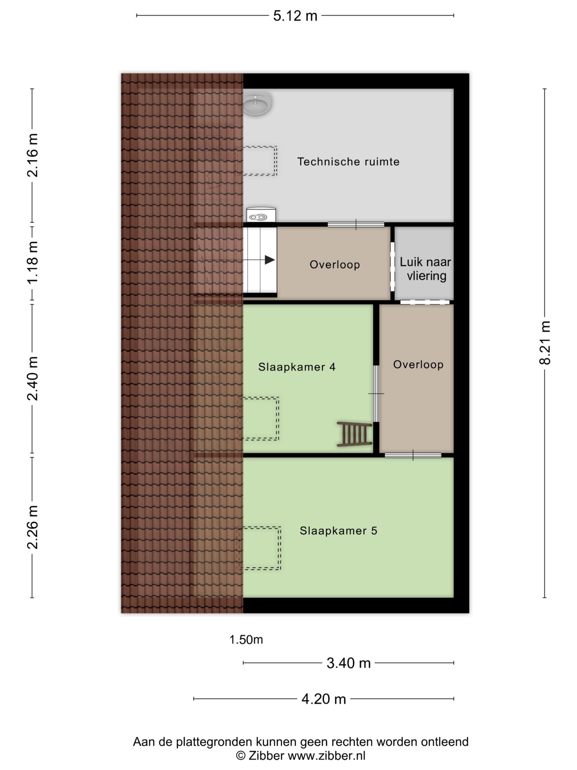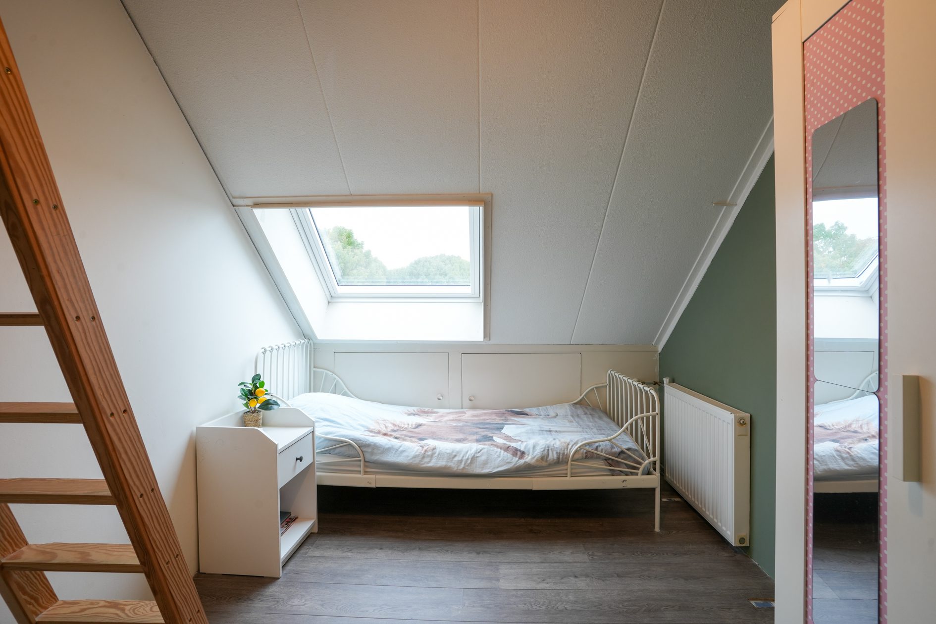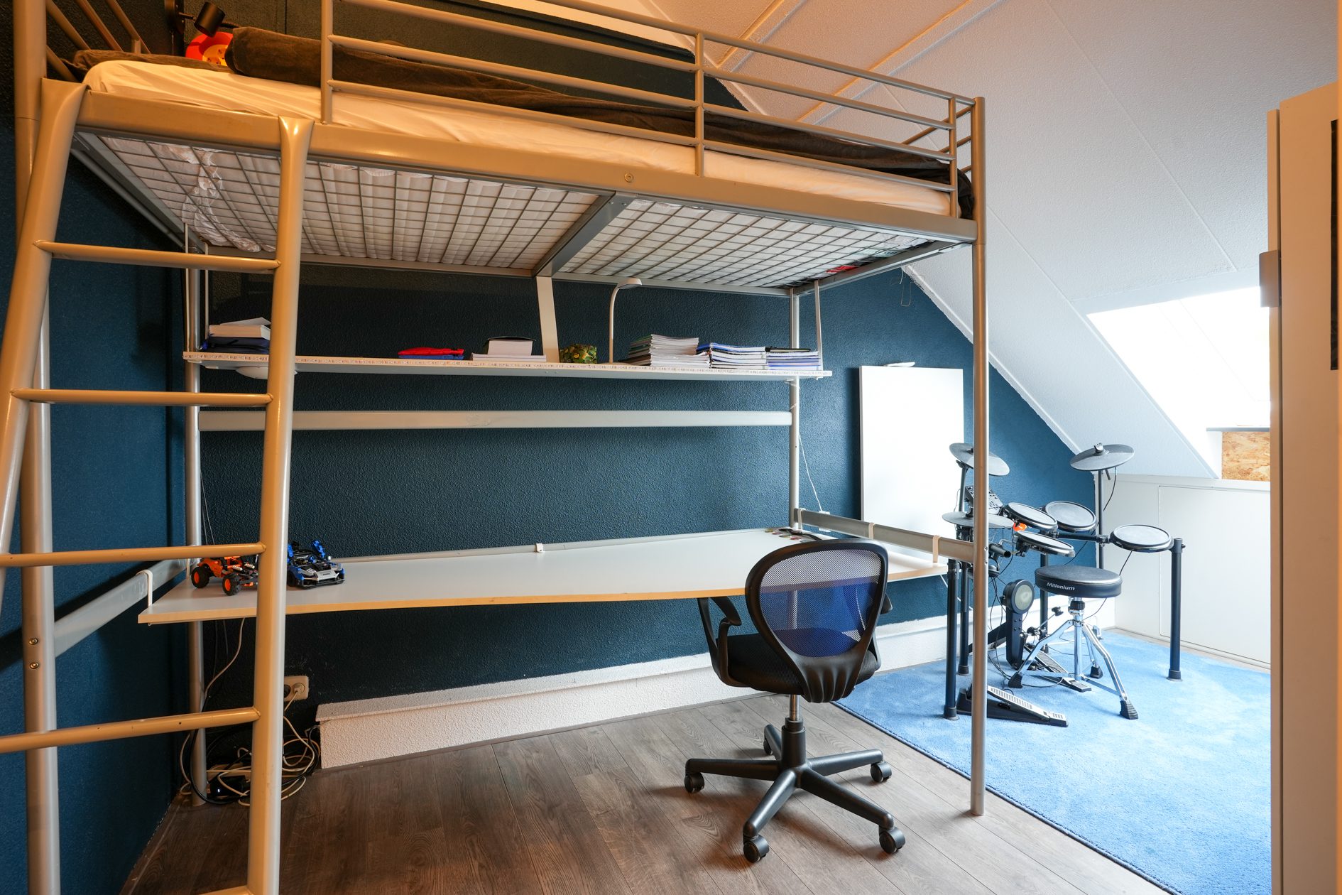 Via een zelfde open designtrap vanaf de overloop gaan we naar de tweede verdieping waar we uitkomen op een L-vormige overloop. Van hieruit zijn nog eens 2 slaapkamers (2021) en een grote berg- annex wasruimte bereikbaar. Slaapkamer 4 van ca. 2.90 x 2.40 m is voorzien van een groot Velux dakraam en een leuke extra: een entresol van ca. 2.40 x 1.25 m, voorzien van een balustrade en te bereiken met een open houten trap. Slaapkamer 5 van ca. 4.20 x 2.26 m is eveneens voorzien van een groot Velux dakraam en beschikt over een tot meer dan 4.00 m hoog oplopend plafond. Aan de achterzijde van de woning ligt de berging annex wasruimte van ca. 5.12 x 2.16 m, voorzien van een klein Velux dakraam. Deze ruimte beschikt over de witgoedaansluitingen en een vaste wastafel met koud stromend water. Hier zijn ook geplaatst: de cv-combiketel (Intergas HRE Kompakt, bouwjaar 2011, eigendom), de aansluitingen en aansturingsunit voor de warmtepomp, de omvormer voor de zonnepanelen alsmede de centrale unit voor de mechanische ventilatie.