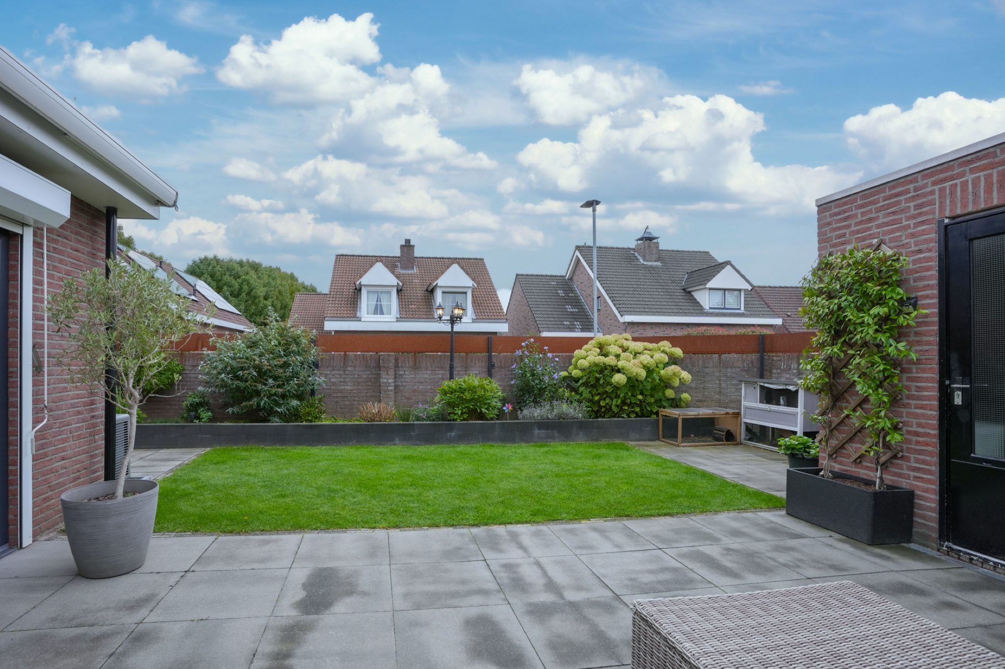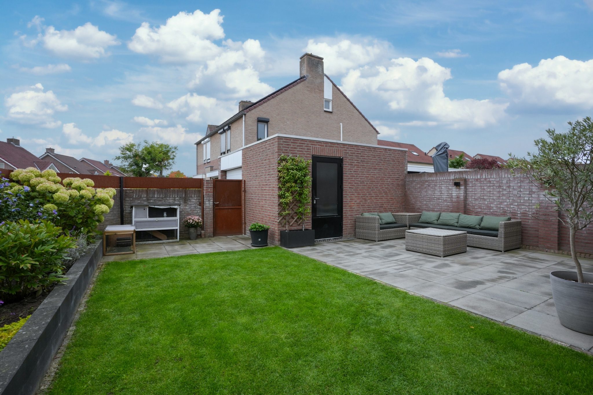 We lopen terug naar de eetkamer om van daaruit de achtertuin in te lopen. Deze ligt op het zuidwesten dus qua bezonning ideaal! De achtertuin is (inclusief de oprit) in 2018 volledig vernieuwd, onderhoudsvrij ingericht en geheel omsloten met een gemetselde wand en cortenstaal afwerking. Via twee afsluitbare poorten van cortenstaal is de achtertuin zowel vanaf de oprit als vanaf de entree van de woning bereikbaar. Aansluitend aan de achtertuin bevindt zich een praktische, halfsteens gemetselde berging van ca. 4.50 x 2.00 m. In de berging is een open doorgang naar de aangrenzende garage van ca. 6.00 x 2.90 m, voorzien van een elektrisch bedienbare sectionaalpoort. Op de oprit, gelegen voor de garage is er ruim voldoende plek voor 1 personenauto.