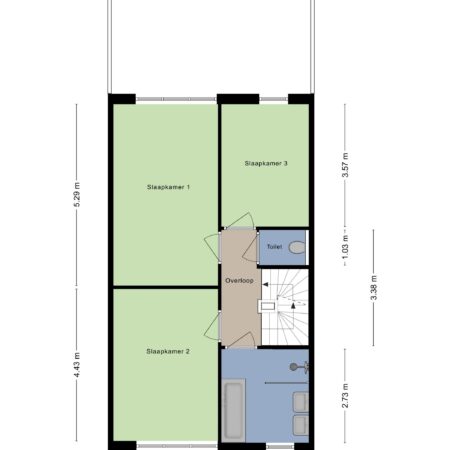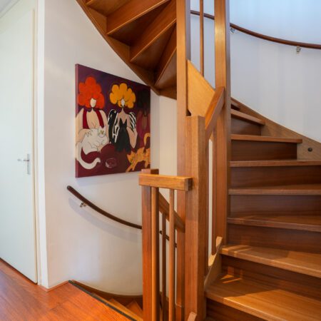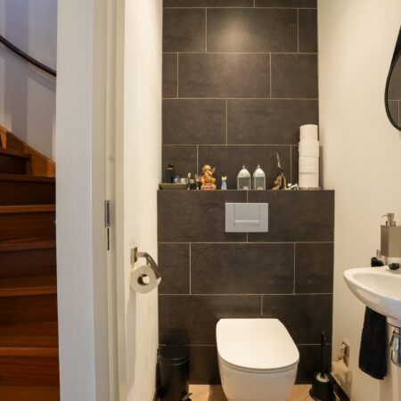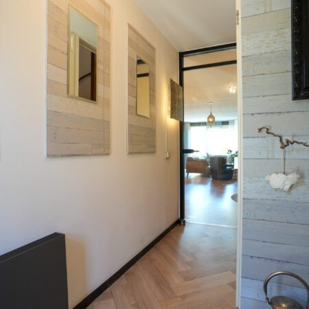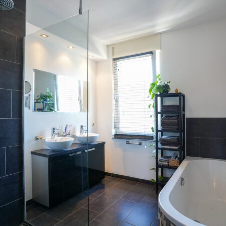 Na al het moois op de begane grond hebben we nog meer! Via de extra brede en in massief Essenhout uitvoerde gesloten trap (niet standaard) gaan we naar boven. We komen uit op de overloop die toegang biedt naar de slaapkamers, de badkamer en een separaat toilet (niet standaard). De gehele verdieping is met uitzondering van de sanitaire ruimtes voorzien van een kersen laminaatvloer en glad stucwerk wandafwerking. Het moderne, luxe toilet is voorzien van een wandcloset. De luxe badkamer van ca. 2.75 x 2.55 m is voorzien van een dubbel wastafelmeubel, een ruime inloop (regen)douche en een comfortabel ligbad. Aan de achterzijde van de woning bevinden zich twee slaapkamers van ca. 3.60 x 2.55 m en ca. 5.30 x 3.05 m waarvan de grootste beschikt over een vaste kastenwand. Aan de voorzijde van de woning ligt de derde slaapkamer van ca. 4.45 x 3.05 m, eveneens voorzien van een kastenwand.