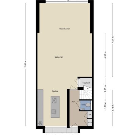 • Riante living met open keuken van in totaal ca. 62 m2;