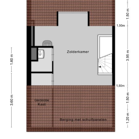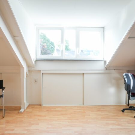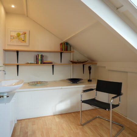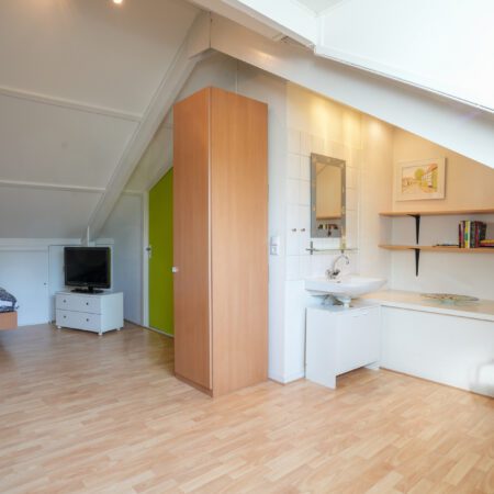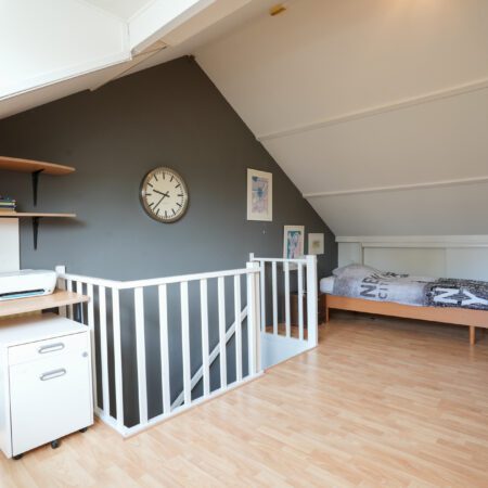 Vanaf de overloop op de eerste verdieping kun je d.m.v. een vaste trap nog verder omhoog naar de tweede verdieping. Dan kom je uit op de zolderverdieping die in 2006 is getransformeerd tot supermooie master bedroom van ca. 23 m2, voorzien van een grote dakkapel (ca. 2.00 m breed) met elektrisch rolluik, een studiehoek, een wastafelmeubel, een separate berging met loopdeur en aan beide zijden bergruimte met schuifpanelen. Op deze verdieping bevindt zich ook een afgesloten cv-ruimte alwaar de cv-combiketel (Remeha Avanta HR, bouwjaar 2021, eigendom) is geplaatst.
