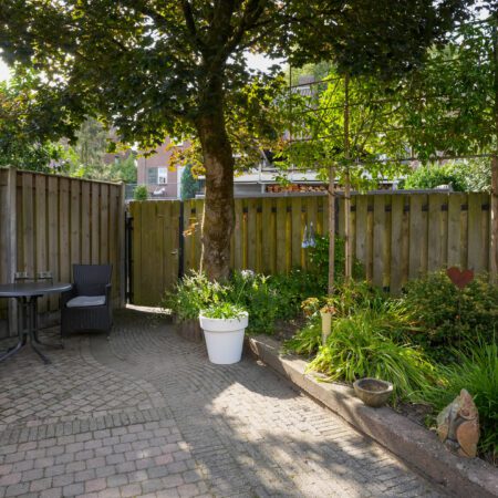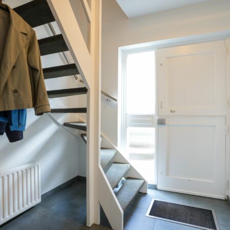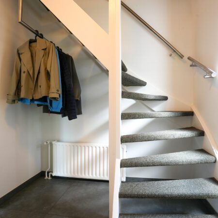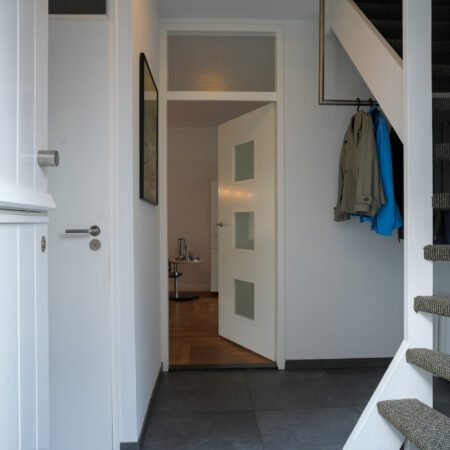 Wanneer je bij deze woning aan komt lopen valt het je meteen op. Dit is niet zomaar een tweekapper. Met smaakvolle esthetische details (zoals bijvoorbeeld de prachtige raamluiken en de originele overdekte doorloop naar de entree) alsmede de fraai aangelegde en keurig verzorgde tuin is dit een woning met uitstraling en karakter. We lopen naar de entree van de woning, gesitueerd in de zijgevel. Ga je mee naar binnen? Je komt in een strakke, moderne ontvangsthal met 60x60cm plavuizen op de vloer, een garderobenis, een moderne meterkast uit 2021 met 10 schakelautomaten, een open trap naar de verdieping en een modern gastentoilet uit 2021 (geheel betegeld en voorzien van een wandcloset en fonteintje).