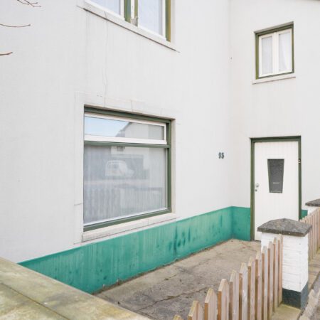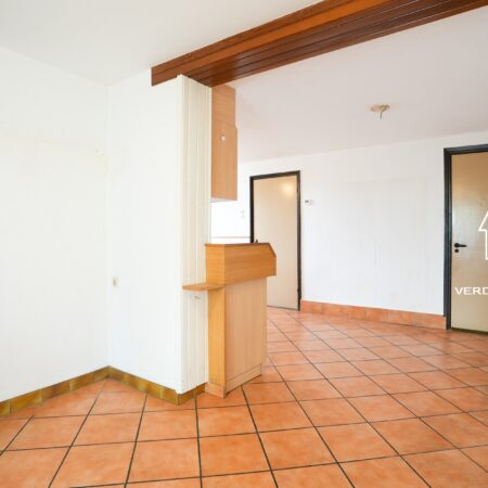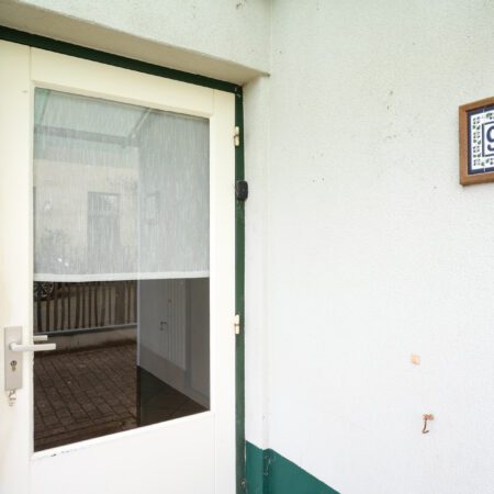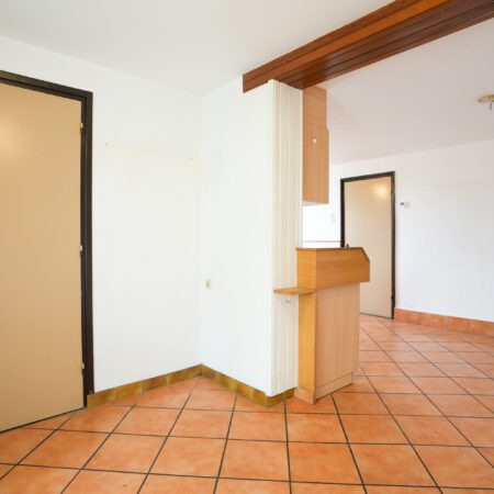 Via een knus voortuintje kom je bij de voordeur van deze woning vol karakter. We gaan naar binnen. De hal van ca. 3.35 x 1.00 m is meer een gang zoals dat in die tijd gebruikelijk was. Hier bevindt zich naast de voordeur de te moderniseren meterkast. Vanuit de hal kun je linksaf naar de woonkamer, rechtdoor naar de kelder (toegang d.m.v. een loopdeur) en rechtsaf naar de woonkeuken.