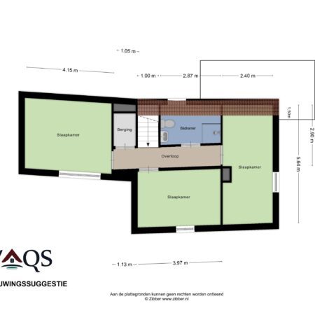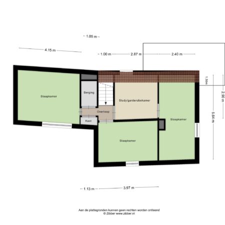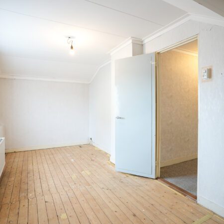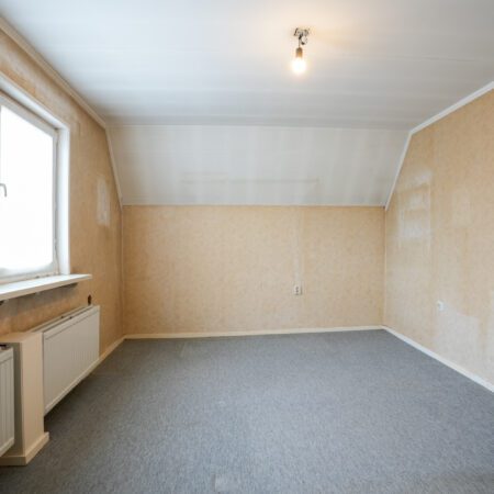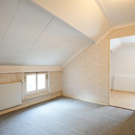 Via een gesloten trap vanuit de woonkeuken (toegang d.m.v. een loopdeur) lopen we naar boven en komen uit op de overloop. De gehele verdieping heeft een houten constructievloer. Vanaf de overloop heb je toegang tot een tussenkamer van ca. 3.00/2.90 x 3.05 m (bijvoorbeeld te gebruiken als studeer- of garderobekamer), de eerste slaapkamer van ca. 5.65 x 2.45 m, een tweede slaapkamer van ca. 4.15 x 2.70 m, een berging van ca. 1.70 x 1.05m, een bergkast van ca. 1.15 x 0.55 m en tot slot een derde slaapkamer van ca. 4.15 x 3.40 m. De zolderverdieping is niet toegankelijk. Deze ruimte kan benut worden voor extra bergruimte, maar bijvoorbeeld ook voor het realiseren van een geweldige ruimtebeleving in de slaapkamers door het huidige plafond weg te halen.