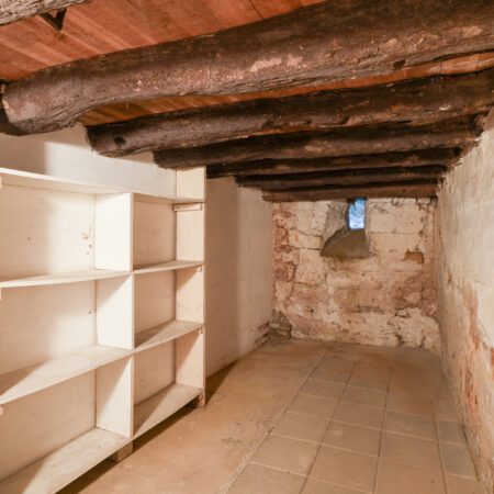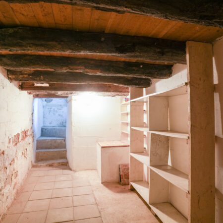 Vanuit de hal kun je de in mergelsteen opgetrokken kelder van ca. 4.18 x 1.80 m bereiken. De stahoogte bedraagt ca. 1.70 m. Hier bevindt zich de watermeter.
