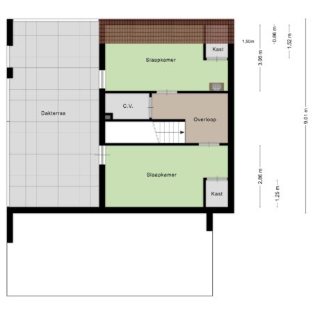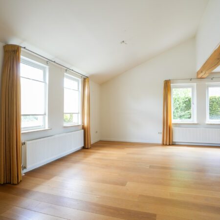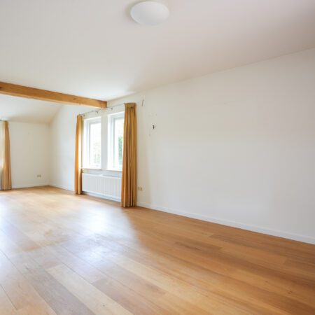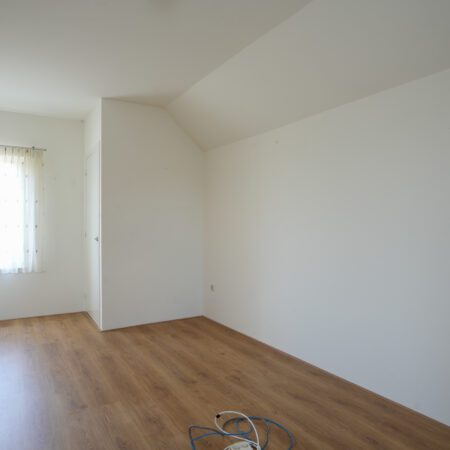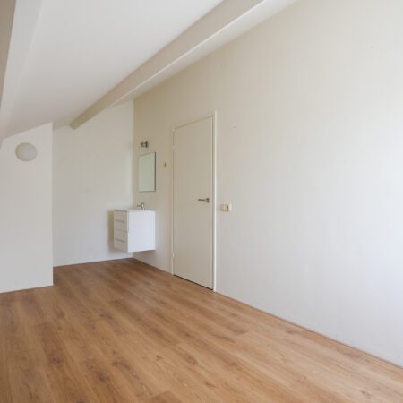 Via de open trap in de ontvangsthal lopen we naar boven en komen daar uit op een ruime overloop. De gehele verdieping is ook afgewerkt met glad stucwerk wandafwerking en laminaat vloerbedekking. Op de overloop bevindt zich een berging met tegelvloer waar de cv-combiketel is geplaatst (Nefit Trendline HRC30, bouwjaar 2013 en voor het laatst onderhouden op 22-12-2023). Via het plafond in de berging is met een losse trap nog een vliering bereikbaar voor het opbergen van spullen die je niet vaak nodig hebt. De eerste slaapkamer van ca. 5.70 x 3.05 m vloeroppervlakte (ca. 5.70 x 2.20 m gemeten vanaf 1.50 m plafondhoogte) beschikt over een ruime muurkast en een wastafelmeubel. De tweede slaapkamer van ca. 5.70 x 2.86 m beschikt eveneens over een ruime muurkast met ingebouwde kluis en heeft tevens een loopdeur naar een potentieel dakterras (al heb je dat hier niet nodig met die heerlijke tuin).