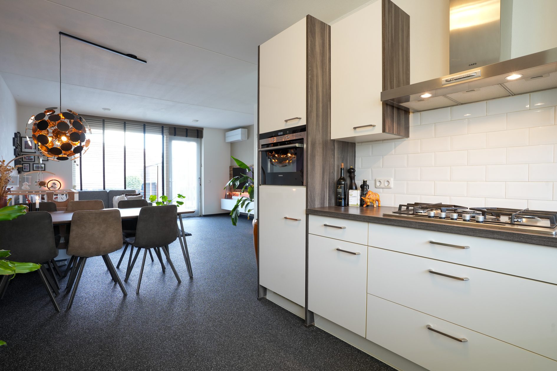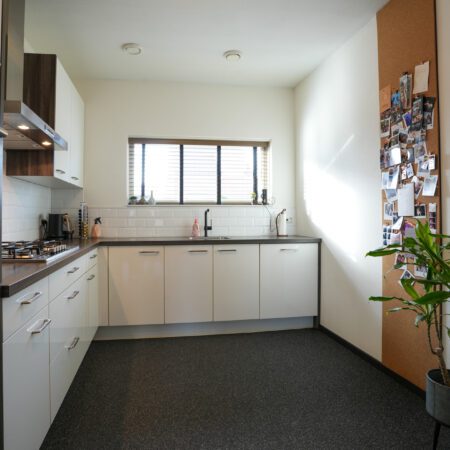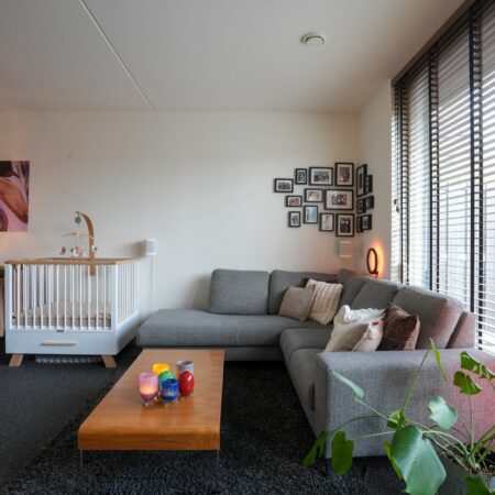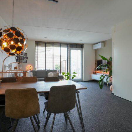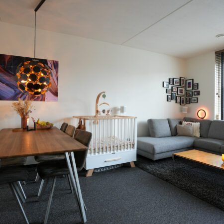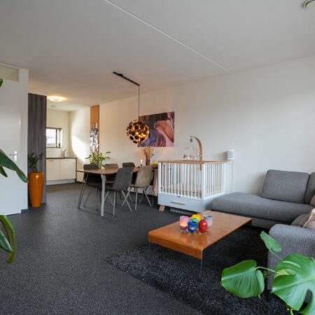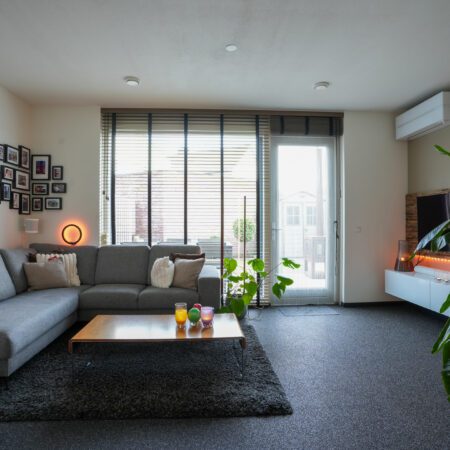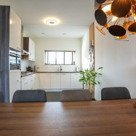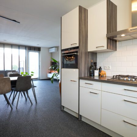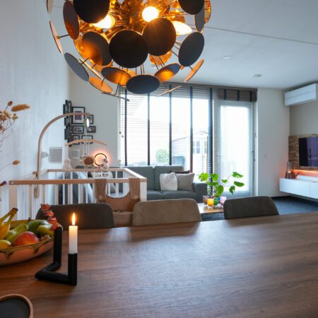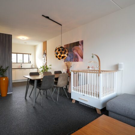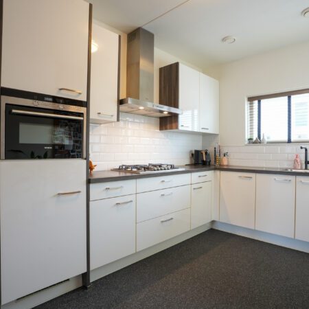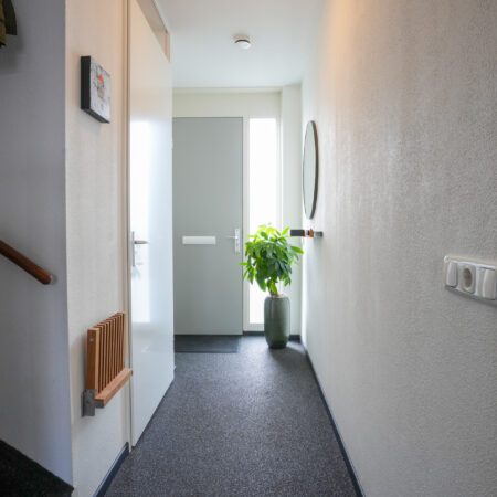 Je komt aan voor de bezichtiging, stapt uit je auto en loopt naar de woning. Wat valt je op? Waarschijnlijk dat deze wijk nog vrij jong is en omgeven door prachtig landelijk gebied. Valt je nog iets op als je voor de woning staat? Niet meteen? Dat kunnen we ons voorstellen, want je verwacht het niet. Deze tussengelegen woning heeft een doorgang naar de achtertuin. Dat is natuurlijk superhandig en alle complimenten voor de architect die dit bedacht heeft. We doen de deur voor je open en je gaat naar binnen, komt in de hal en je ziet het meteen. Deze woning is strak en modern afgewerkt! Alles wat je ziet is bovendien maximaal 11 jaar jong!