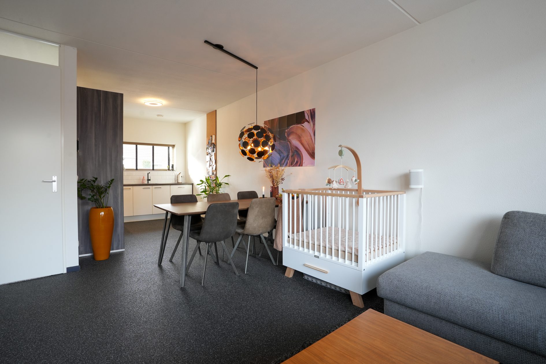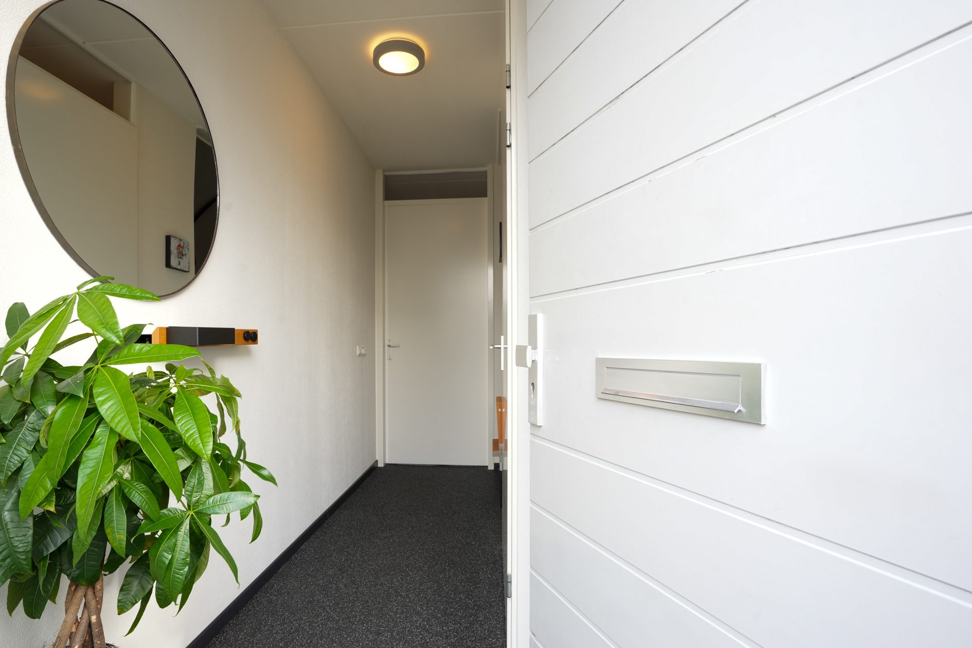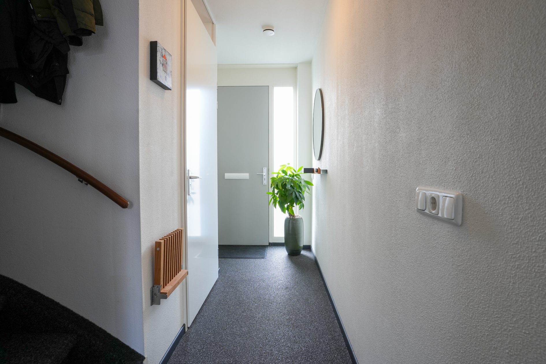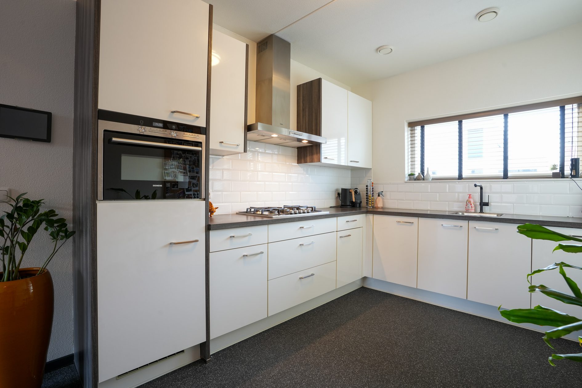 Je komt aan voor de bezichtiging, stapt uit je auto en loopt naar de woning. Wat valt je op? Waarschijnlijk dat deze wijk nog vrij jong is en omgeven door prachtig landelijk gebied. Valt je nog iets op als je voor de woning staat? Niet meteen? Dat kunnen we ons voorstellen, want je verwacht het niet. Deze tussengelegen woning heeft een doorgang naar de achtertuin. Dat is natuurlijk superhandig en alle complimenten voor de architect die dit bedacht heeft. We doen de deur voor je open en je gaat naar binnen, komt in de hal en je ziet het meteen. Deze woning is strak en modern afgewerkt! Alles wat je ziet is bovendien maximaal 11 jaar jong!