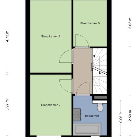 • Drie slaapkamers;