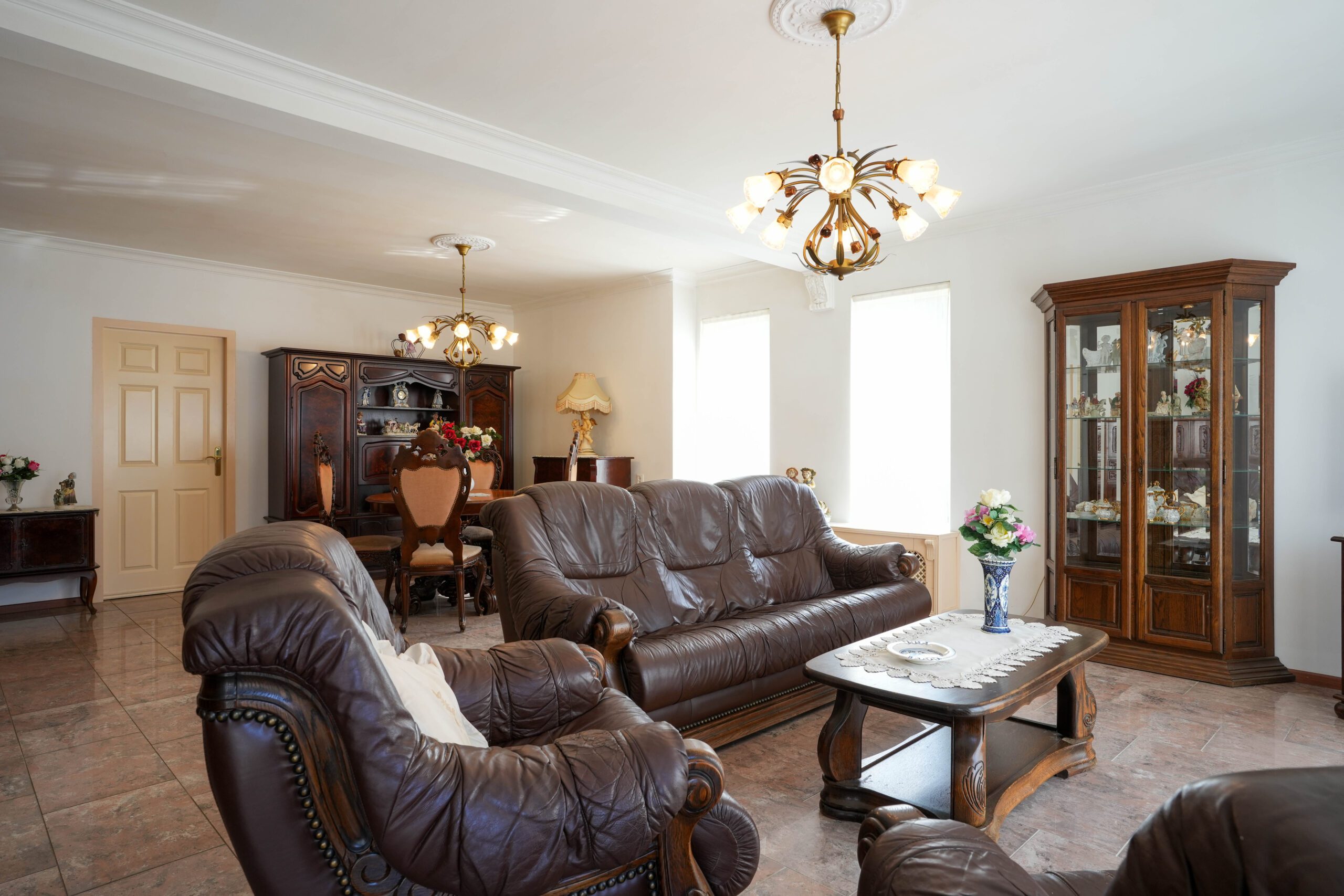 Dit woongedeelte kom je binnen via de entree in de rechter zijgevel bij de oprit. De royale hal van ca. 3.50 x 2.50 m biedt zowel toegang naar dit woongedeelte als naar het tussengelegen woonverblijf. Vanuit deze hal kun je naar de op de begane grond gelegen badkamer en naar de living van de woning. De grote badkamer van ca. 3.60 x 3.50 m2 is geheel betegeld en voorzien van een hoekbad, een massagedouchecabine, een wastafelmeubel, een wandcloset en een handdoekradiator. We lopen naar de living en komen dan eerst in de eetkamer van ca. 3.95 x 3.35 m. Vanuit de eetkamer is de gesloten keuken en een grote kelderkast (onder de trap) te bereiken. Deze keuken van ca. 3.35 x 195 m is thans niet in gebruik als keuken. We verlaten de eetkamer en maken via de tussenhal (met gesloten trap naar de verdieping) de oversteek naar de woonkamer van ca. 6.20 x 3.50/3.30 m, gelegen aan de voorzijde van het pand.