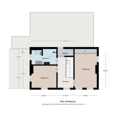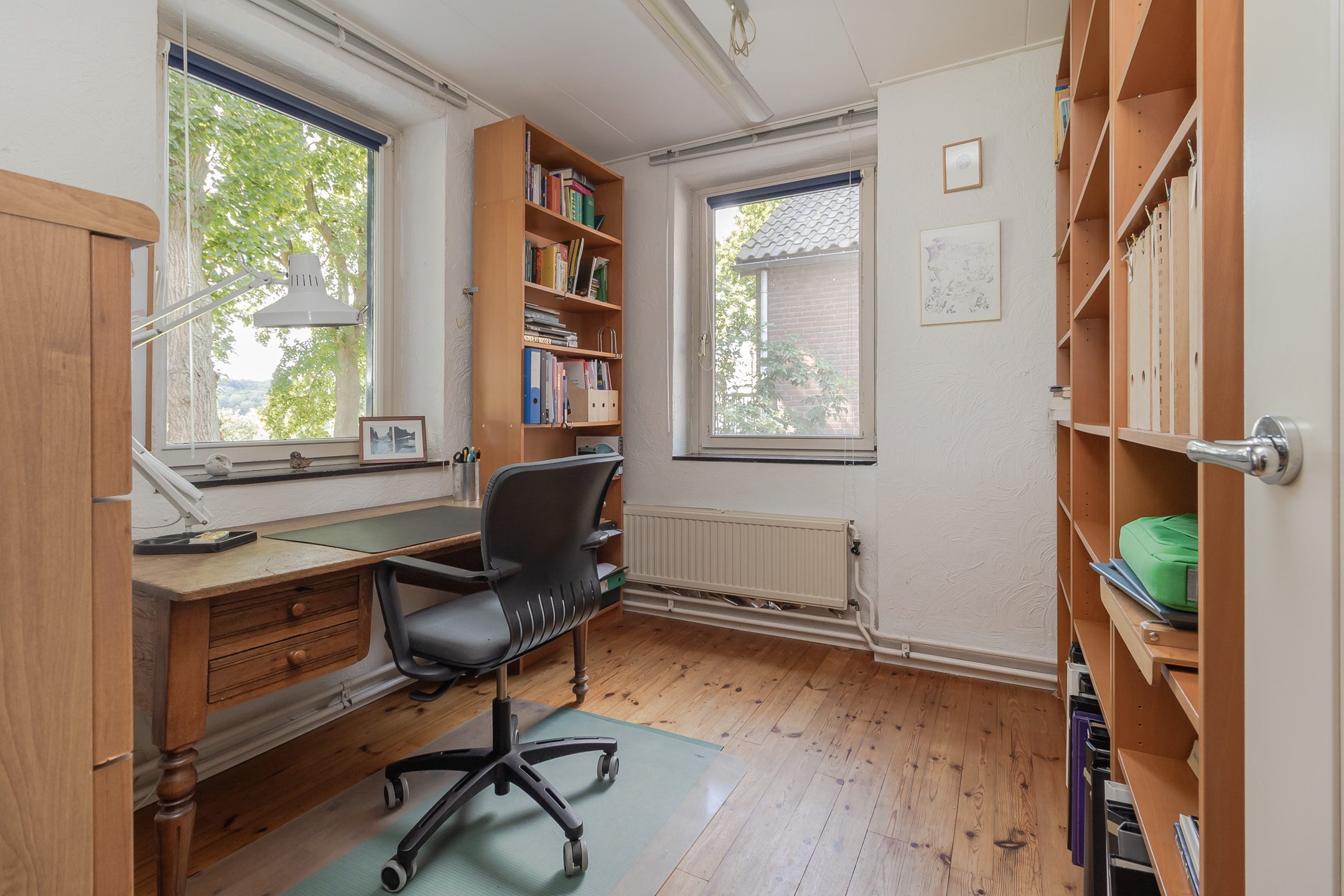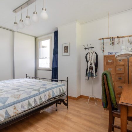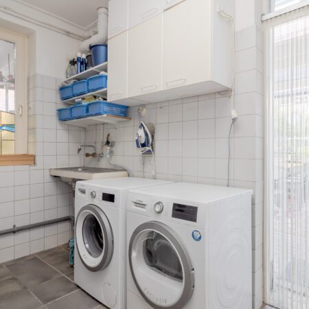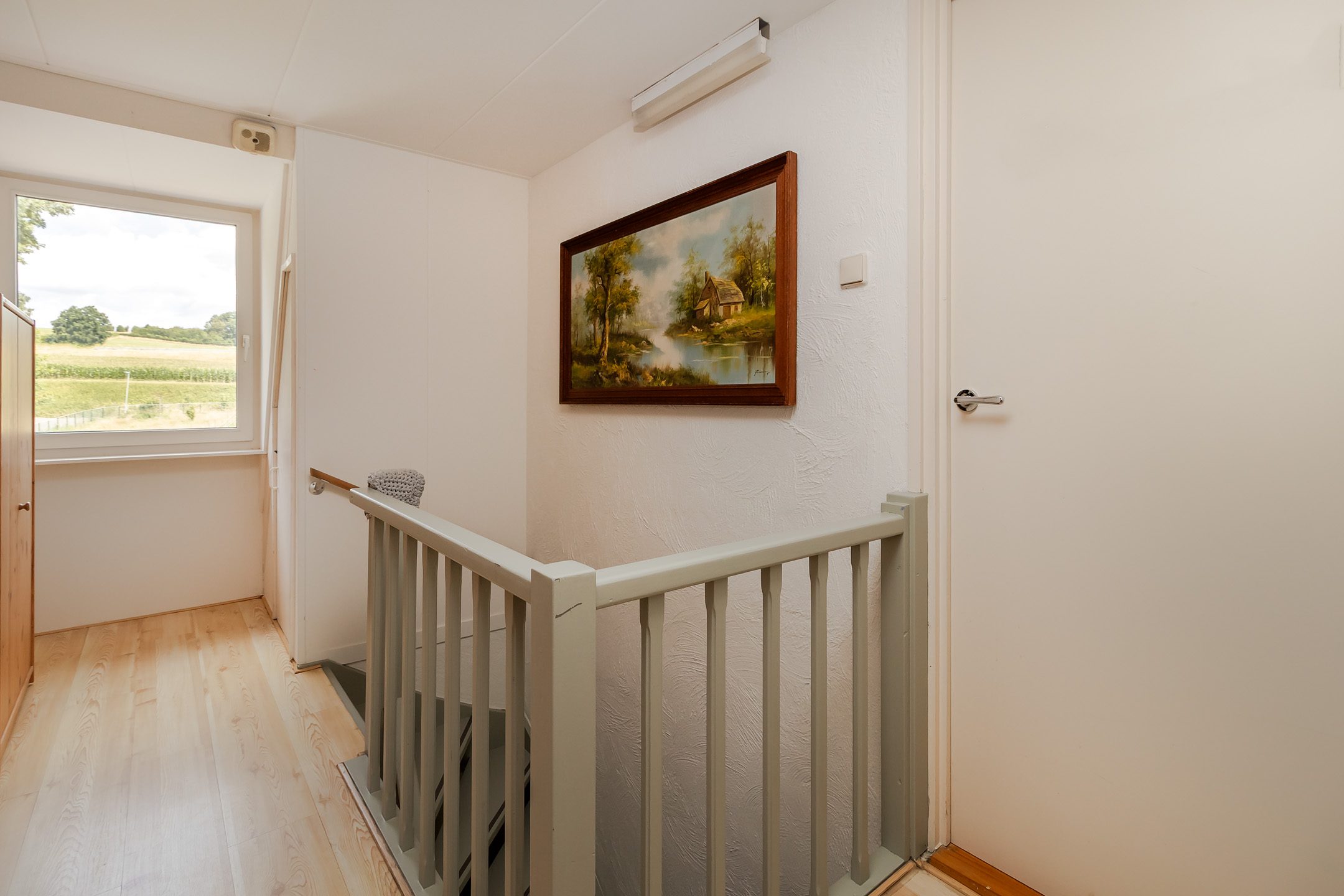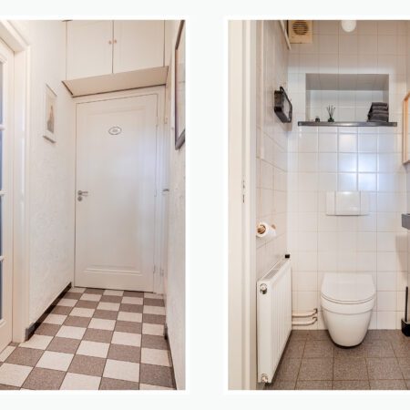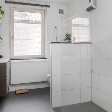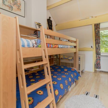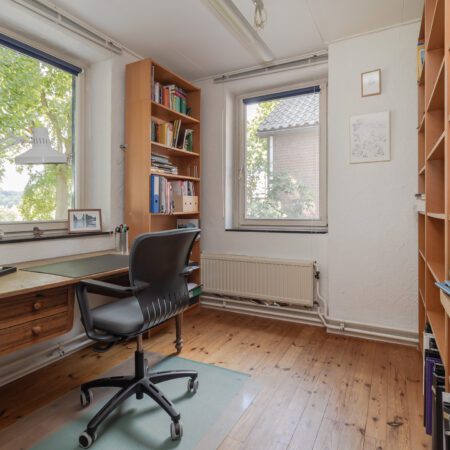 Vanuit de hal op de begane grond lopen we de gesloten trap op naar de verdieping en komen we uit op een riante overloop met gevelraam. Aan het einde van de overloop bevindt zich de oorspronkelijke (kleine) badkamer die getransformeerd is tot handige bergruimte. Een voormalige slaapkamer van ca. 3.10 x 2.10 m is in 2012 benut om hier een comfortabele, moderne badkamer te realiseren. Geheel betegeld en voorzien van een gevelraam, een wastafelmeubel, inloopdouche en wandcloset met fonteintje. Aan de voorzijde bevinden zich de 2 slaapkamers met allebei zicht op het prachtige natuurgebied! Slaapkamer 1 is ca. 4.95 x 3.00 m en beschikt over een vaste kastenwand. Slaapkamer 2 is ca. 3.40 x 2.80 m.