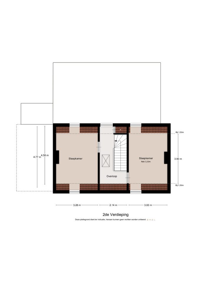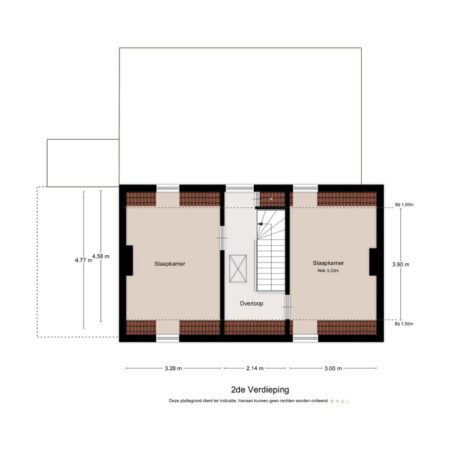 Vanaf de overloop verdieping 1 kunnen we met een open vaste trap naar de tweede verdieping. Aldaar komen we wederom uit op een riante overloop met een dakkapel. Van hieruit zijn de 2 andere slaapkamers bereikbaar. Slaapkamer 3 van ca. 15 m2 met 2 dakkapellen en slaapkamer 4 van ca. 10 m2 eveneens met 2 dakkapellen. Niet onbelangrijk, het gehele dak is in 1990 vervangen inclusief nieuwe Mulden dakpannen, Unidek dakisolatie en nieuwe dakkapellen (5 stuks in totaal).
