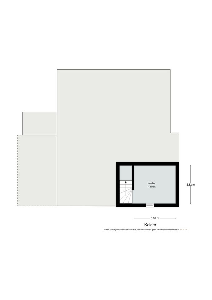 Vanuit de hal kun je naar een praktische provisiekelder van ca. 3.10 x 2.80 m (met stahoogte ca. 1.90 m) met kelderraam.