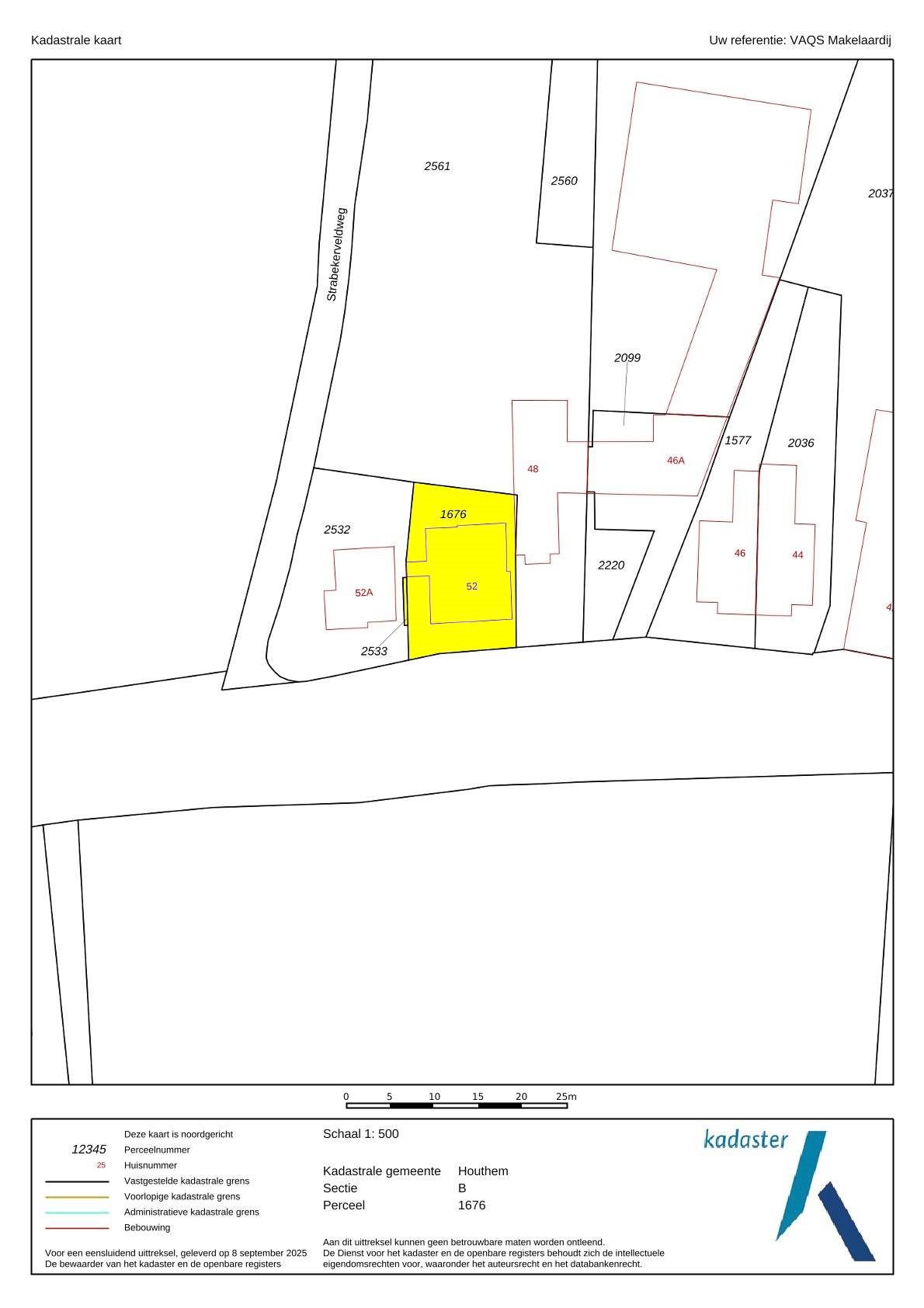 De woning Strabeek 52 ligt aan de doorgaande weg Valkenburg-Meersen. Ter plaatse geldt een maximum snelheid van 50km/u. In de loop van 2026 wordt deze verlaagd naar 30km/u. Parkeren langs de openbare weg is gratis.